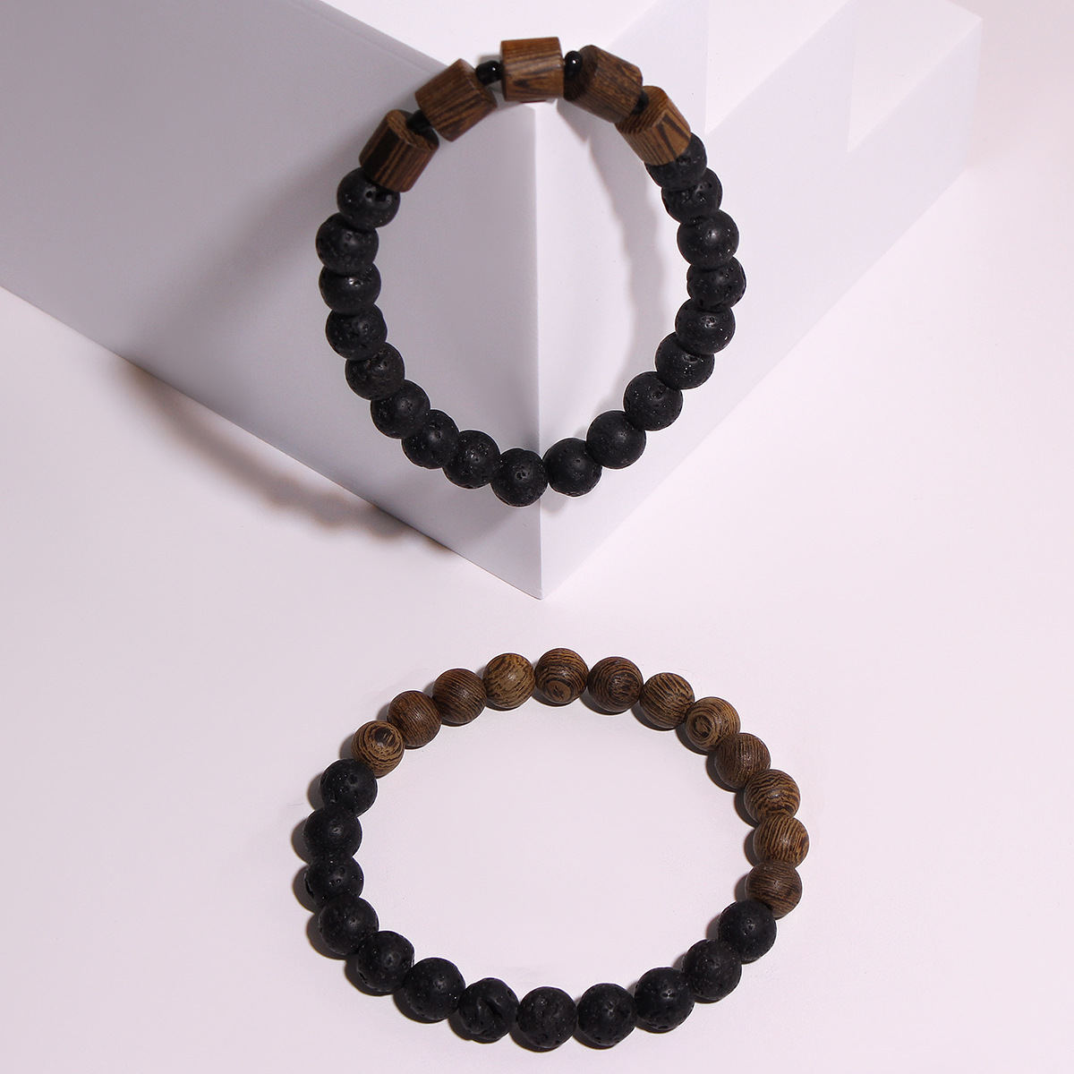 Gemstone Bracelets Lava with Elastic Thread & Wood handmade fashion jewelry & Unisex Sold By PC