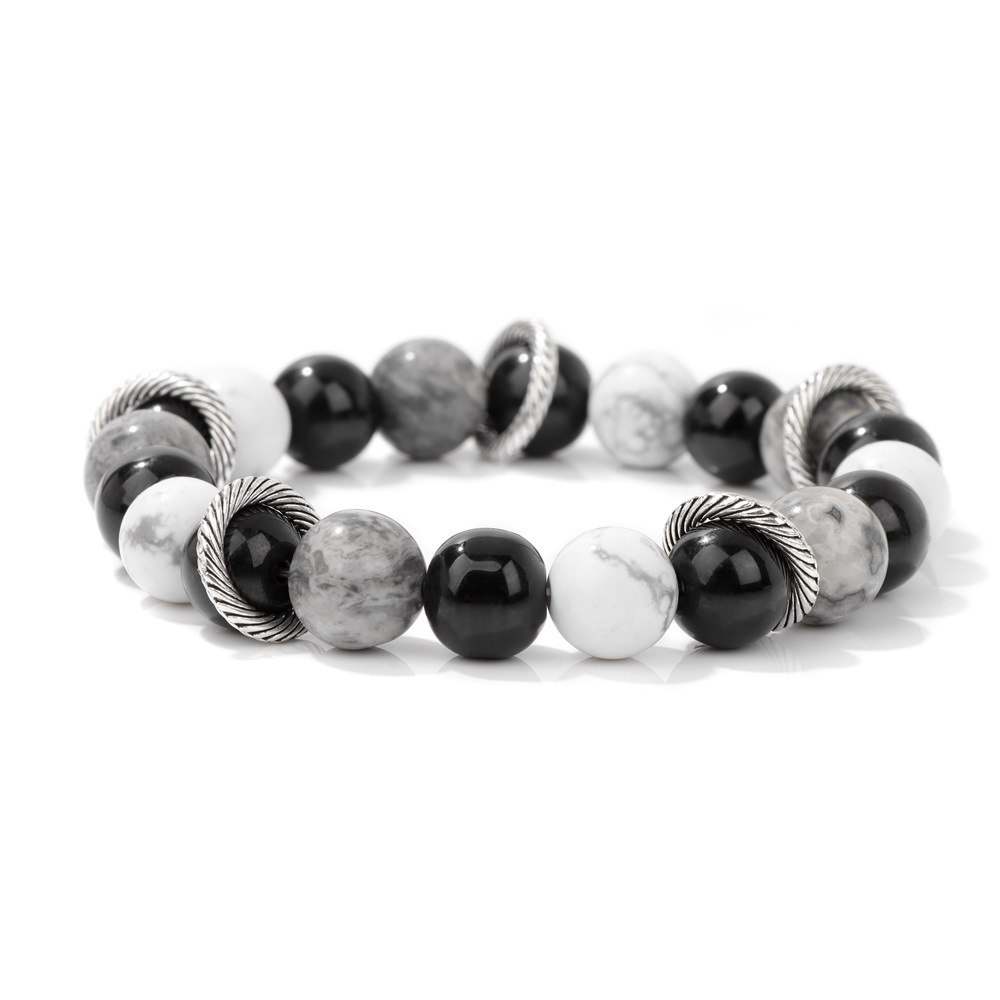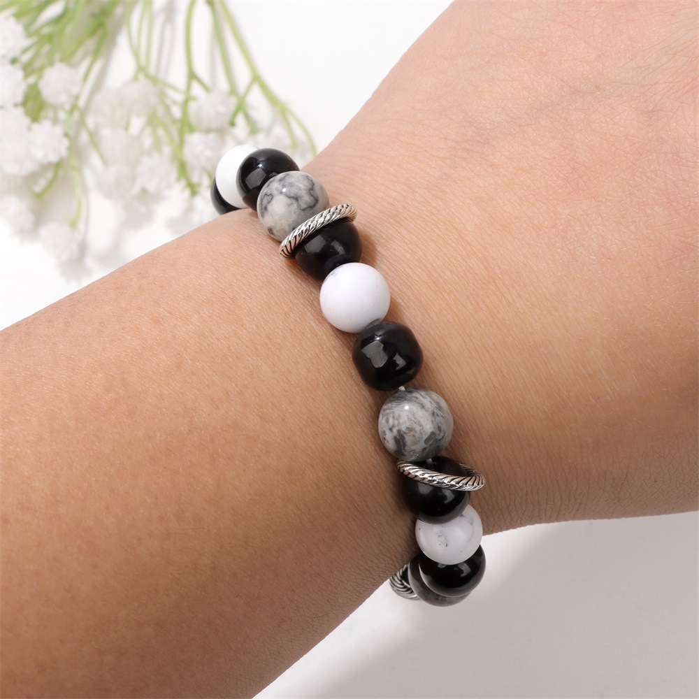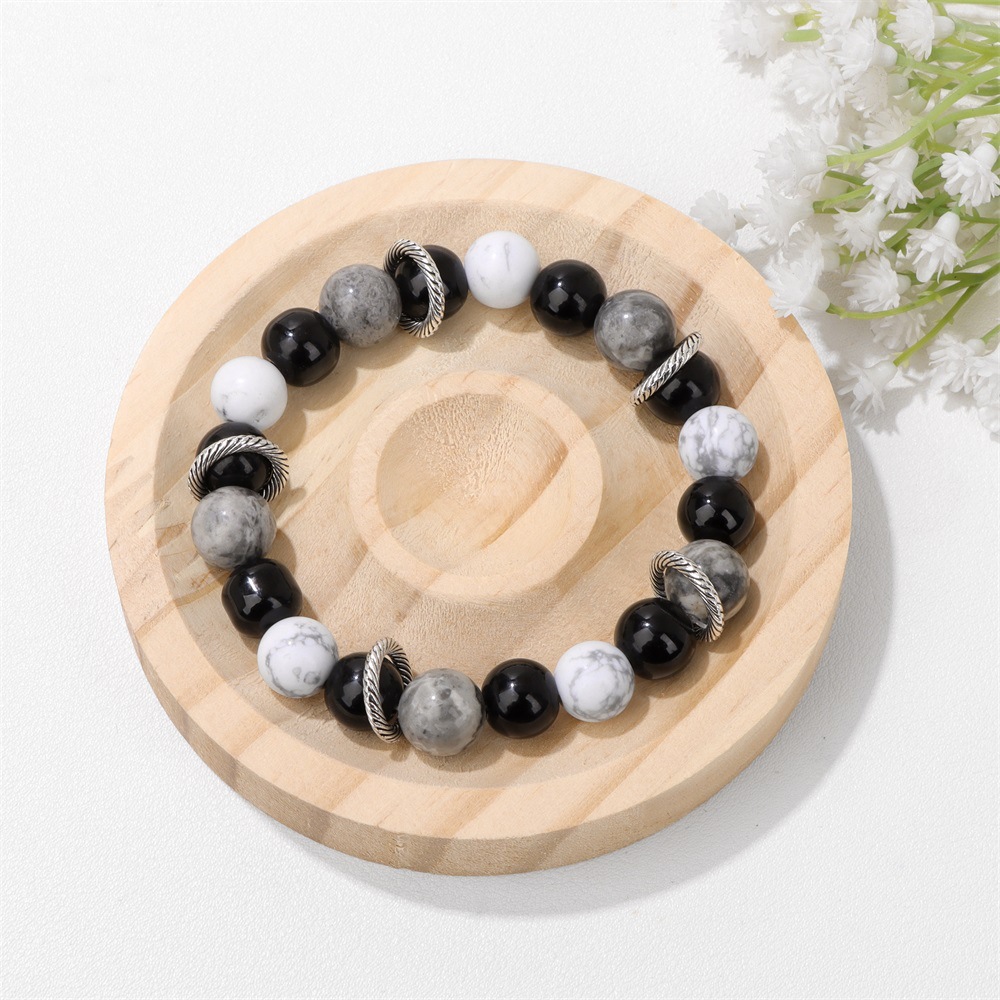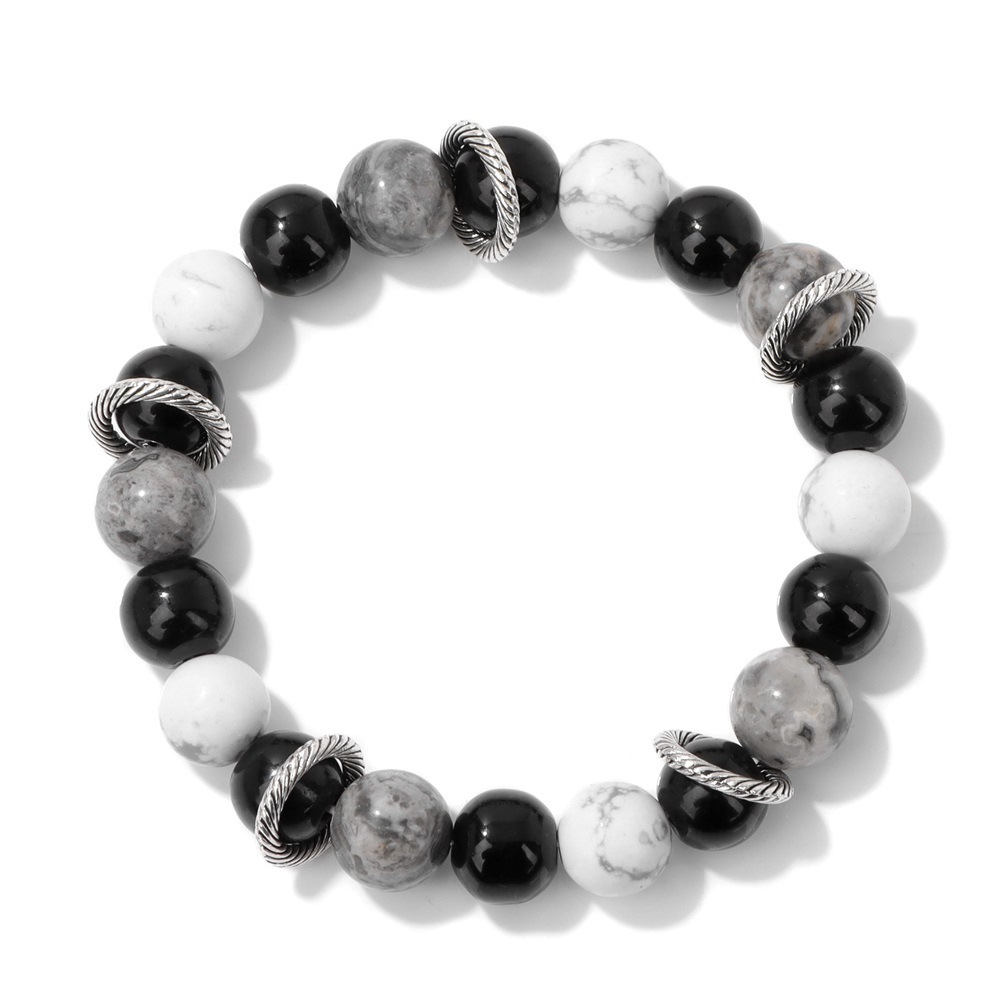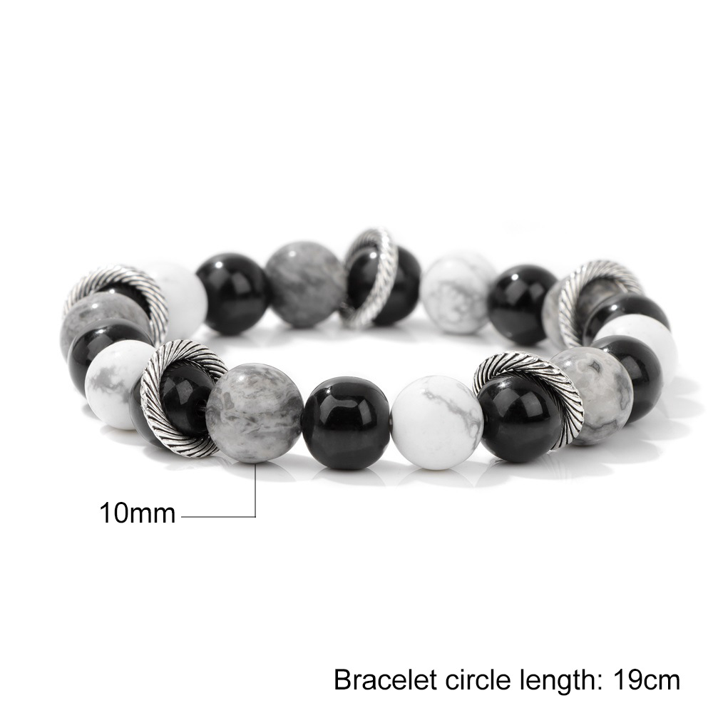 Gemstone Bracelets Map Stone with Howlite & Elastic Thread Round silver color plated Unisex black Sold By PC