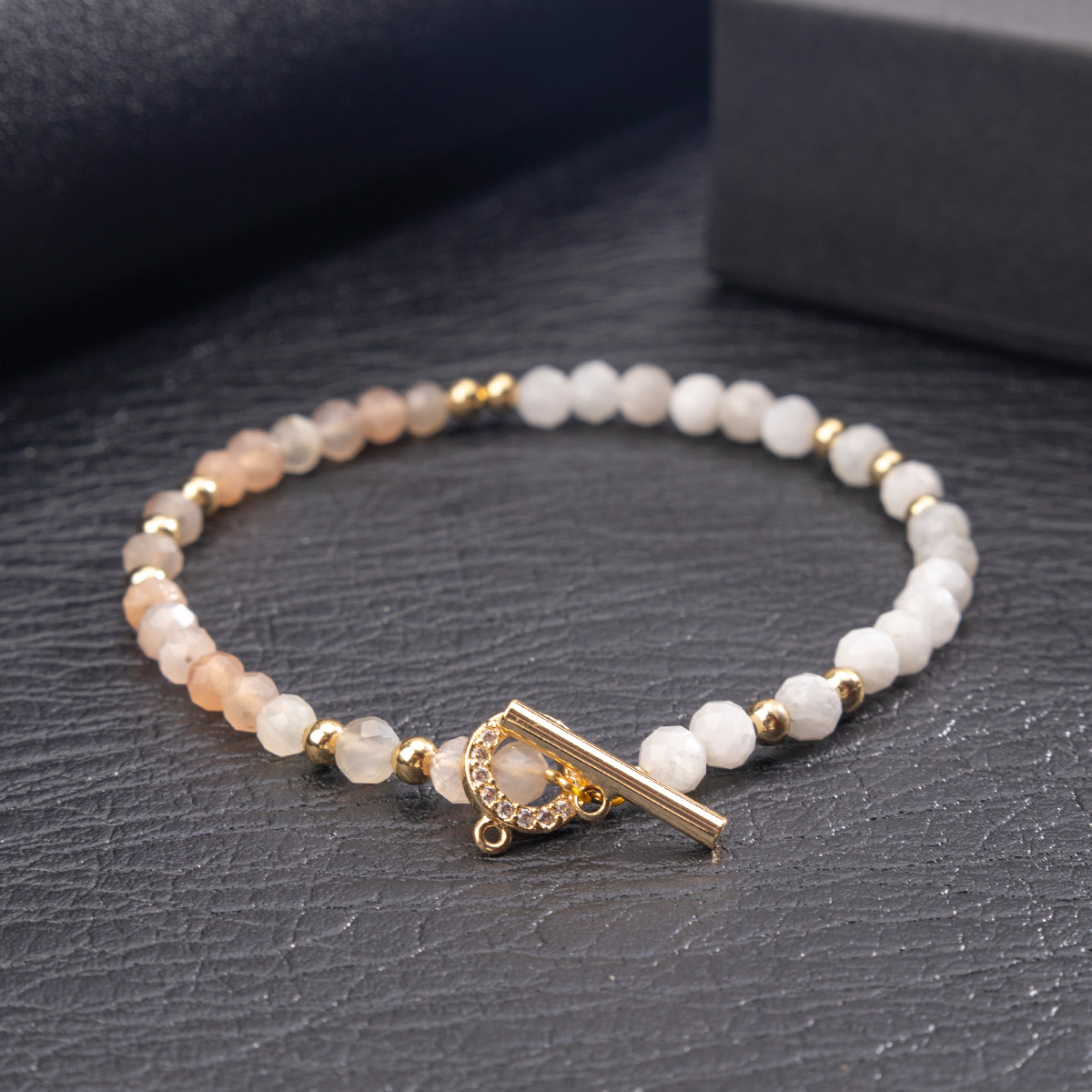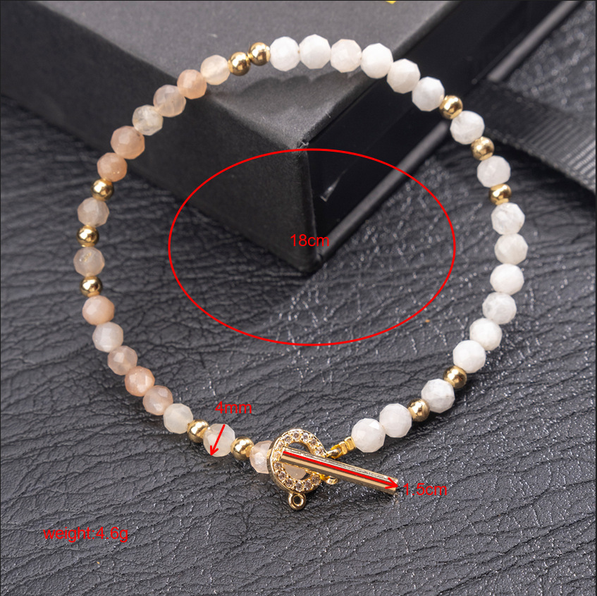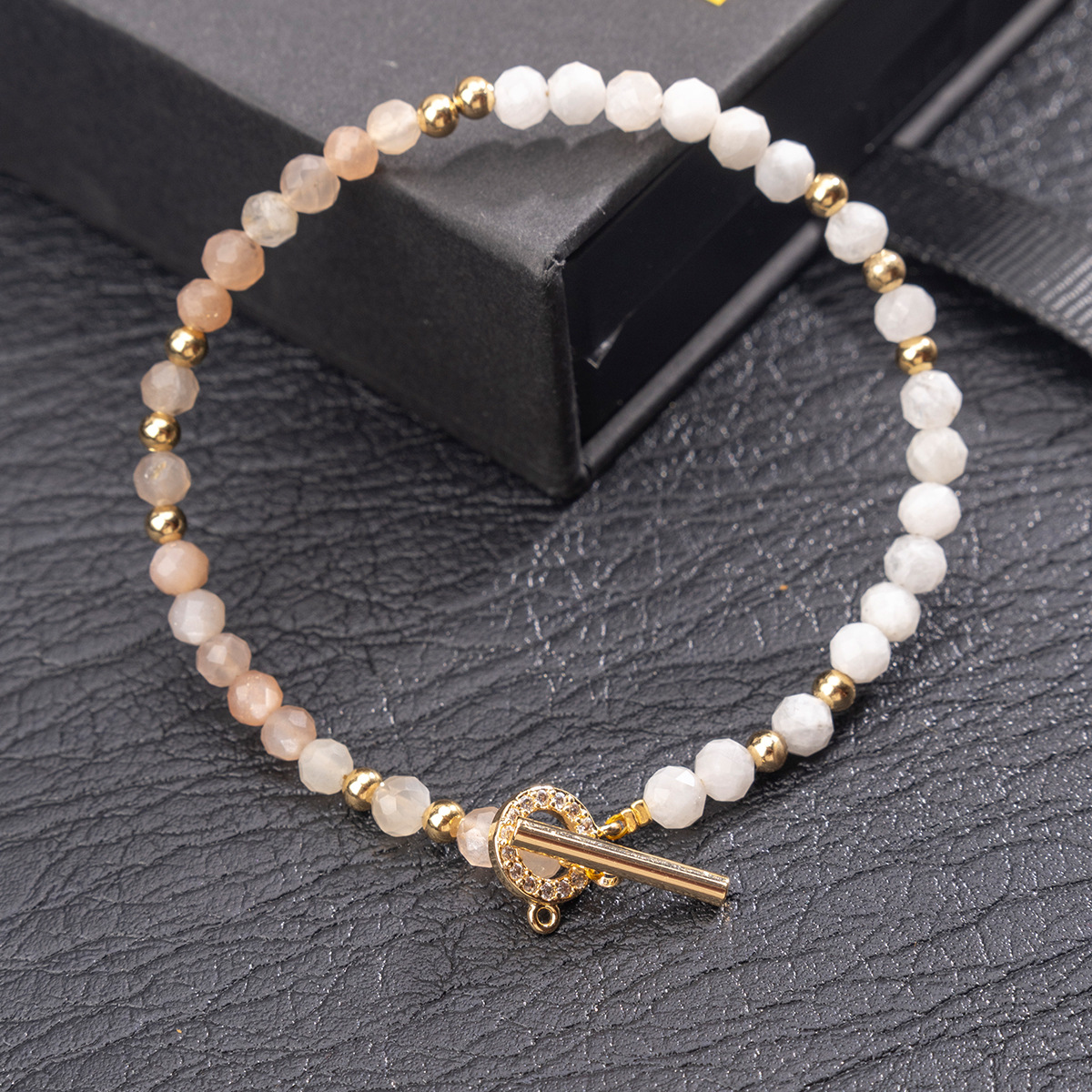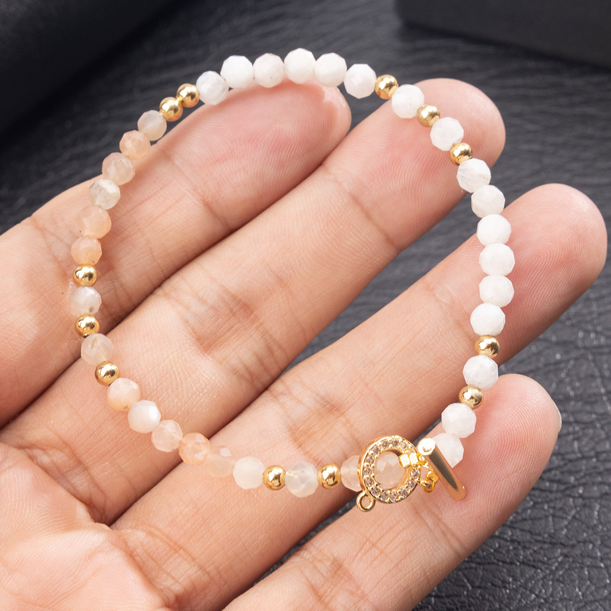Gemstone Bracelets Moonstone with Elastic Thread & 304 Stainless Steel handmade fashion jewelry & for woman Sold By PC