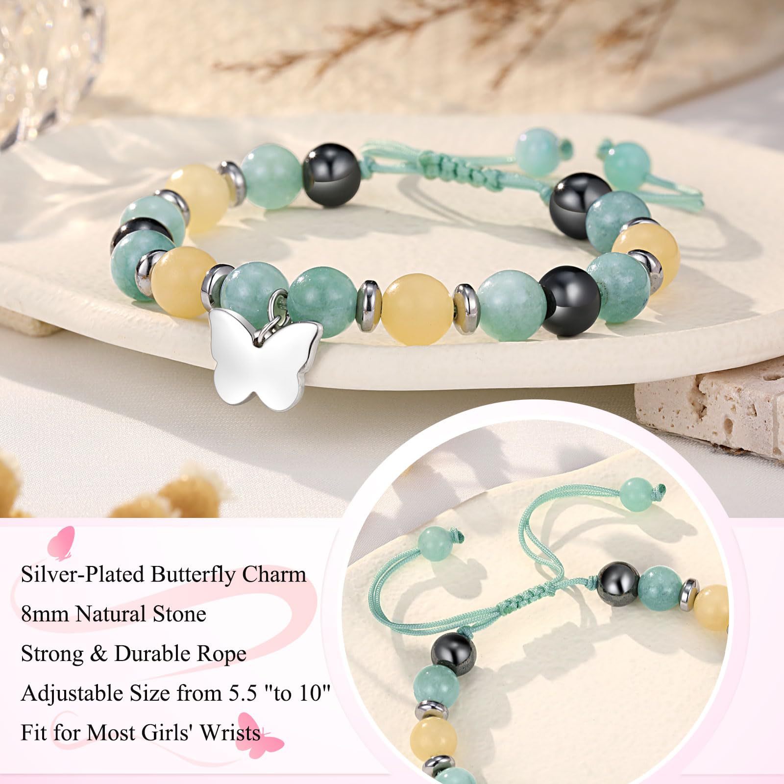 Natural Stone Bracelet with Polyester Cord & Zinc Alloy Butterfly handmade Girl Length Approx 5.5-10 Inch Sold By PC