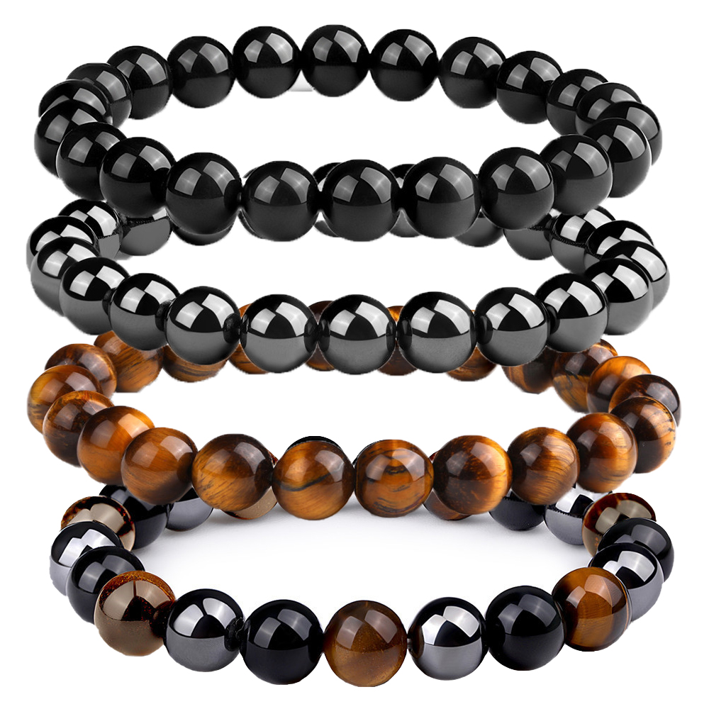 Gemstone Bracelets Obsidian with Iron Rock & Tiger Eye Round 4 pieces & fashion jewelry & Unisex mixed colors 8mm Sold By Set