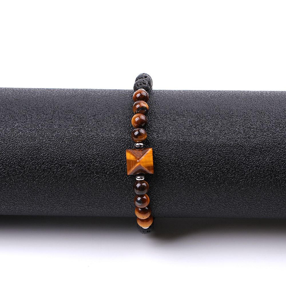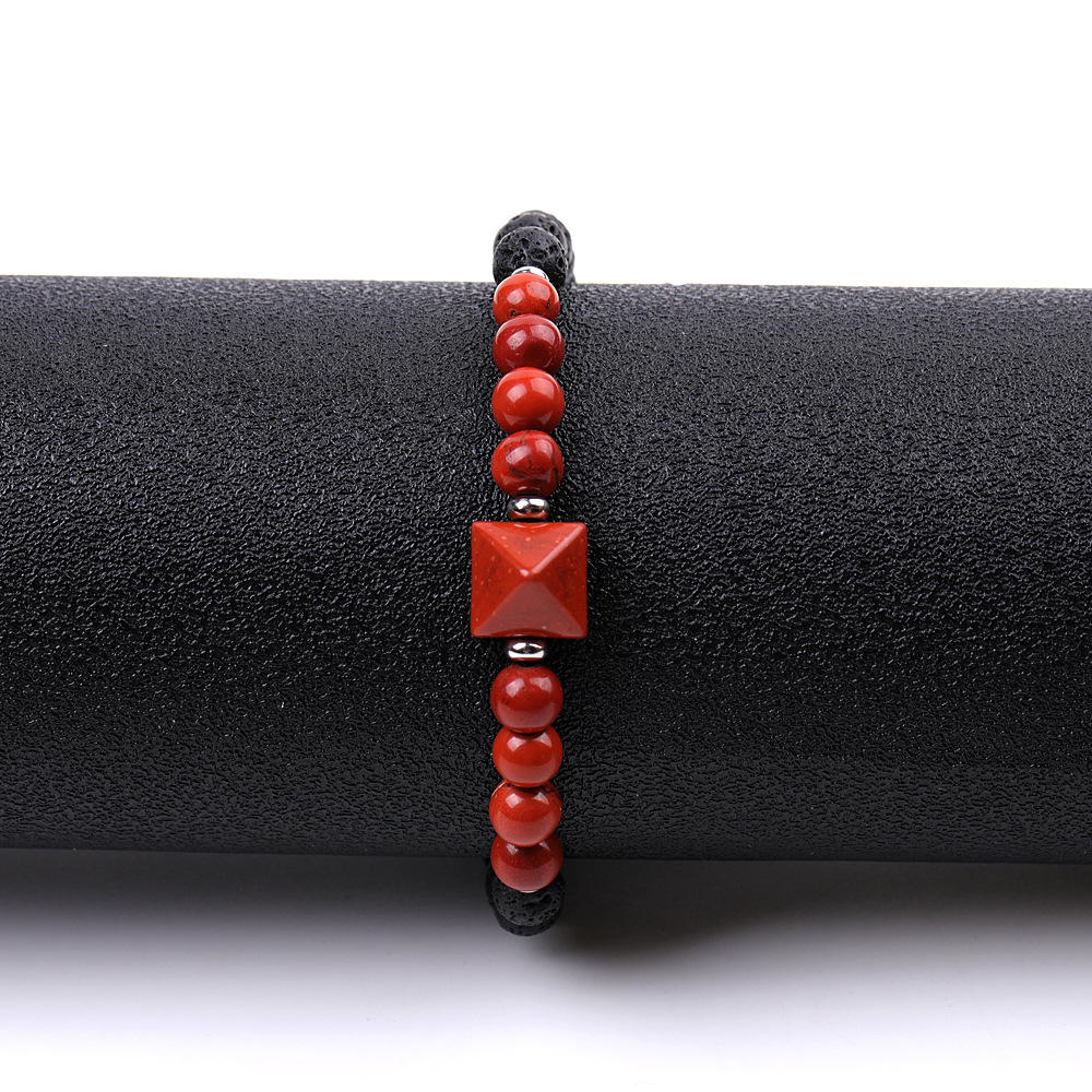Gemstone Bracelets with Knot Cord & Lava & 304 Stainless Steel handmade fashion jewelry & Unisex Sold By PC