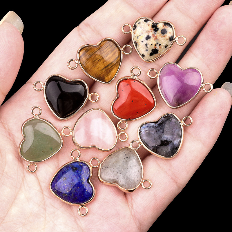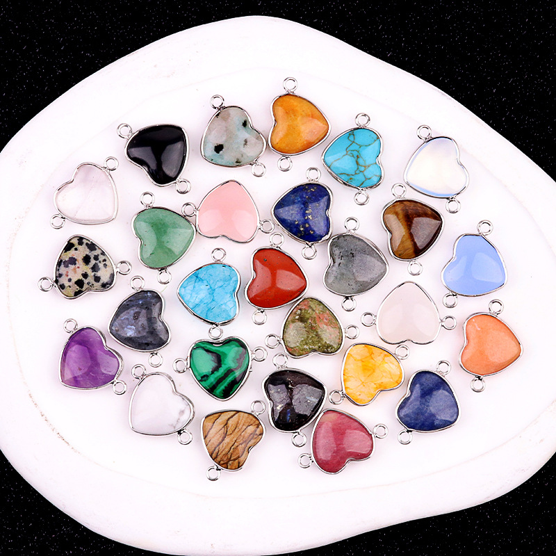 Gemstone Connector Natural Stone with Zinc Alloy Heart DIY Sold By PC