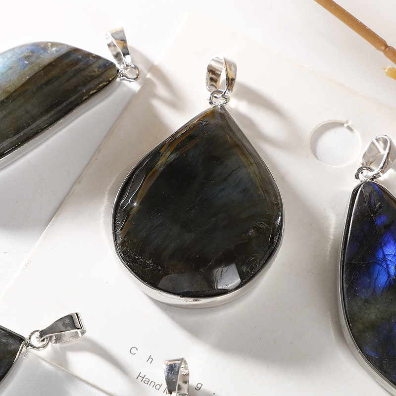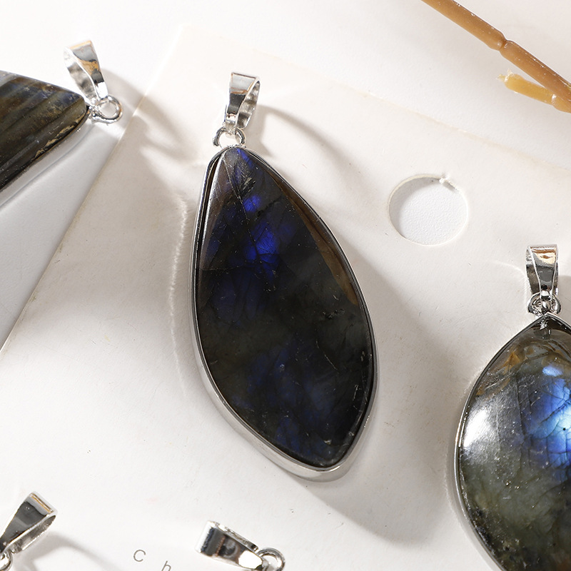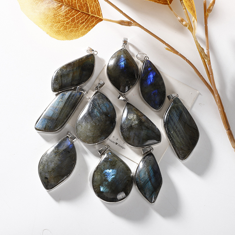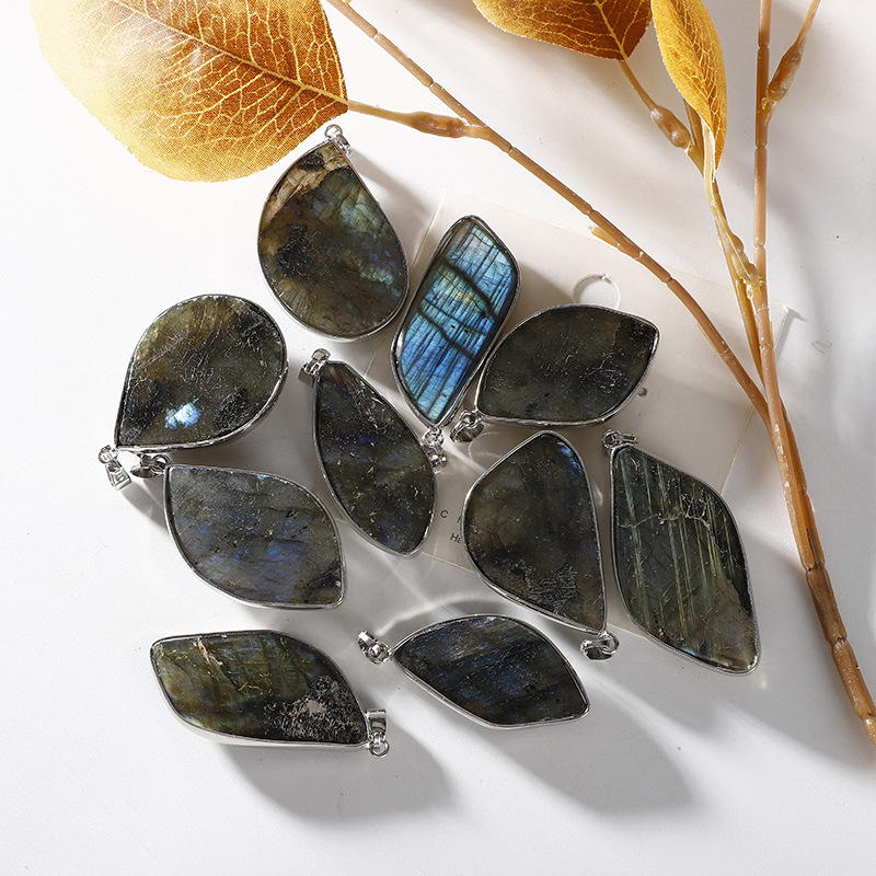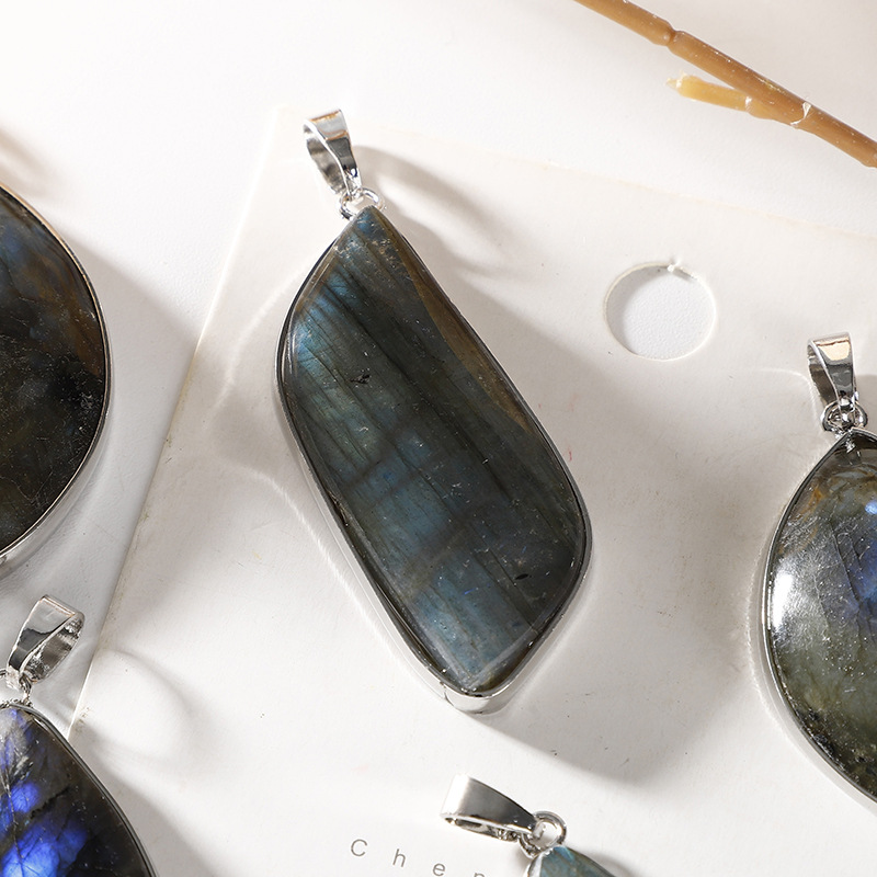 Gemstone Pendants Jewelry Labradorite with Brass platinum color plated DIY Random Color Length mm Sold By PC