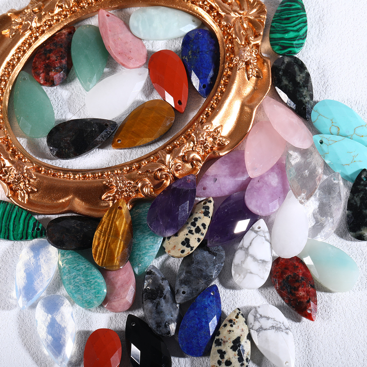 1:Flash stone (single)2:Amethyst (single)3:Purple angel (single)4:Pink crystal (single)5:Sesame red (single)6:Green aventurine (single)7:Tiger eye stone (single)8:Amazonite (single)9:Lapis lazuli (single)10:White jade (single)11:Opal (synthetic) (single)12:White crystal (single)13:Malachite (synthetic) (single)14:White turquoise (single)15:Spotted stone (single)16:Black agate (single)17:Black labradorite (single)18:Green dot stone (single)19:Rose stone (single)20:Blue turquoise (synthetic) (single)21:Red jasper (single)22:Amazon (single)