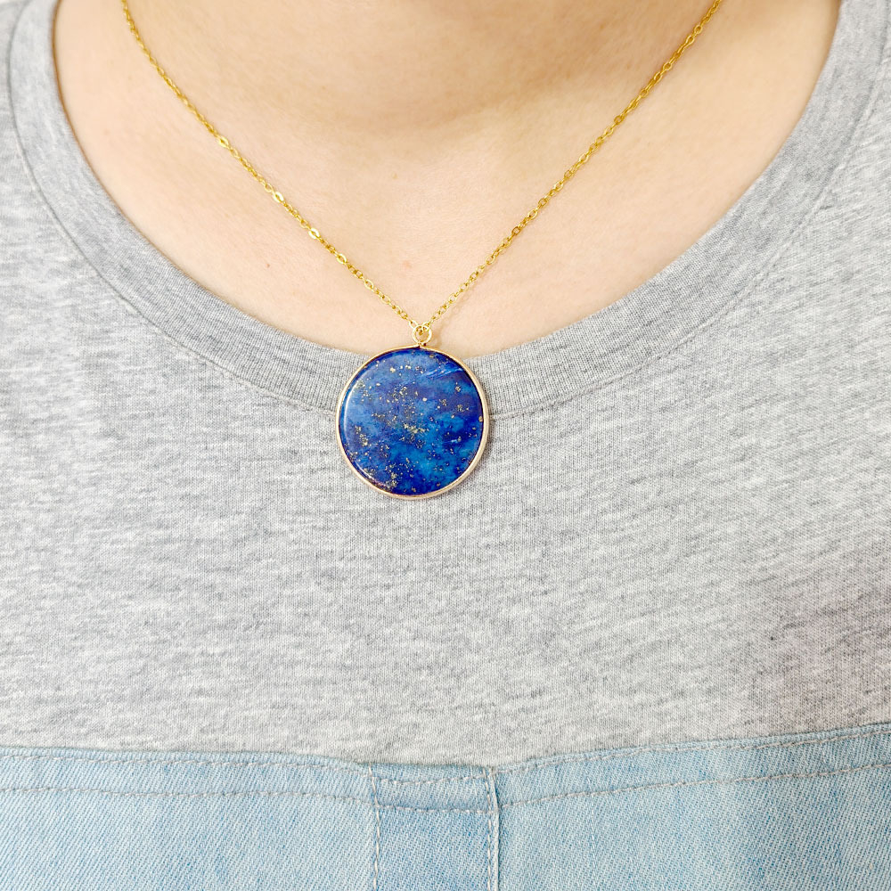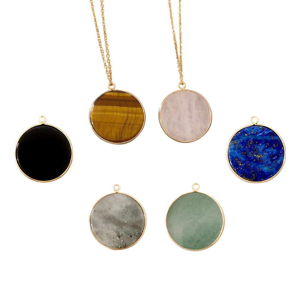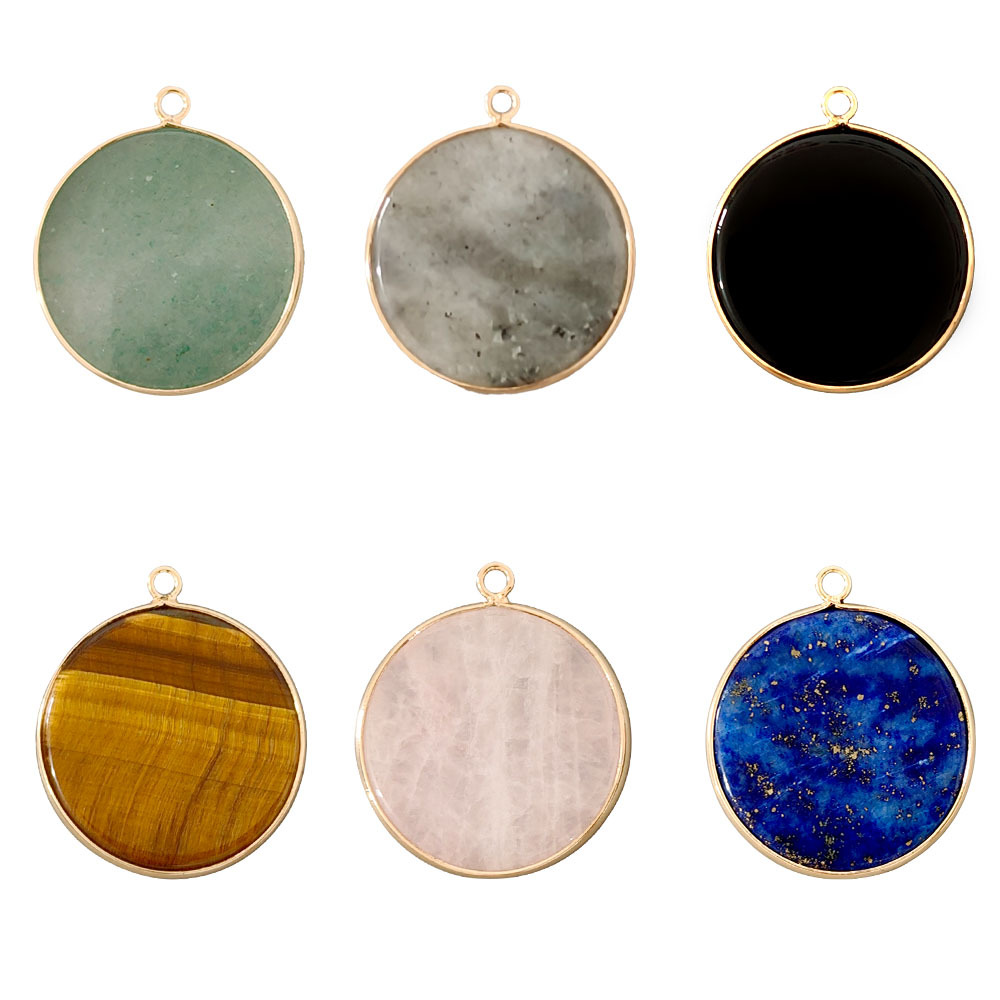 Gemstone Pendants Jewelry Natural Stone Round gold color plated DIY Sold By PC