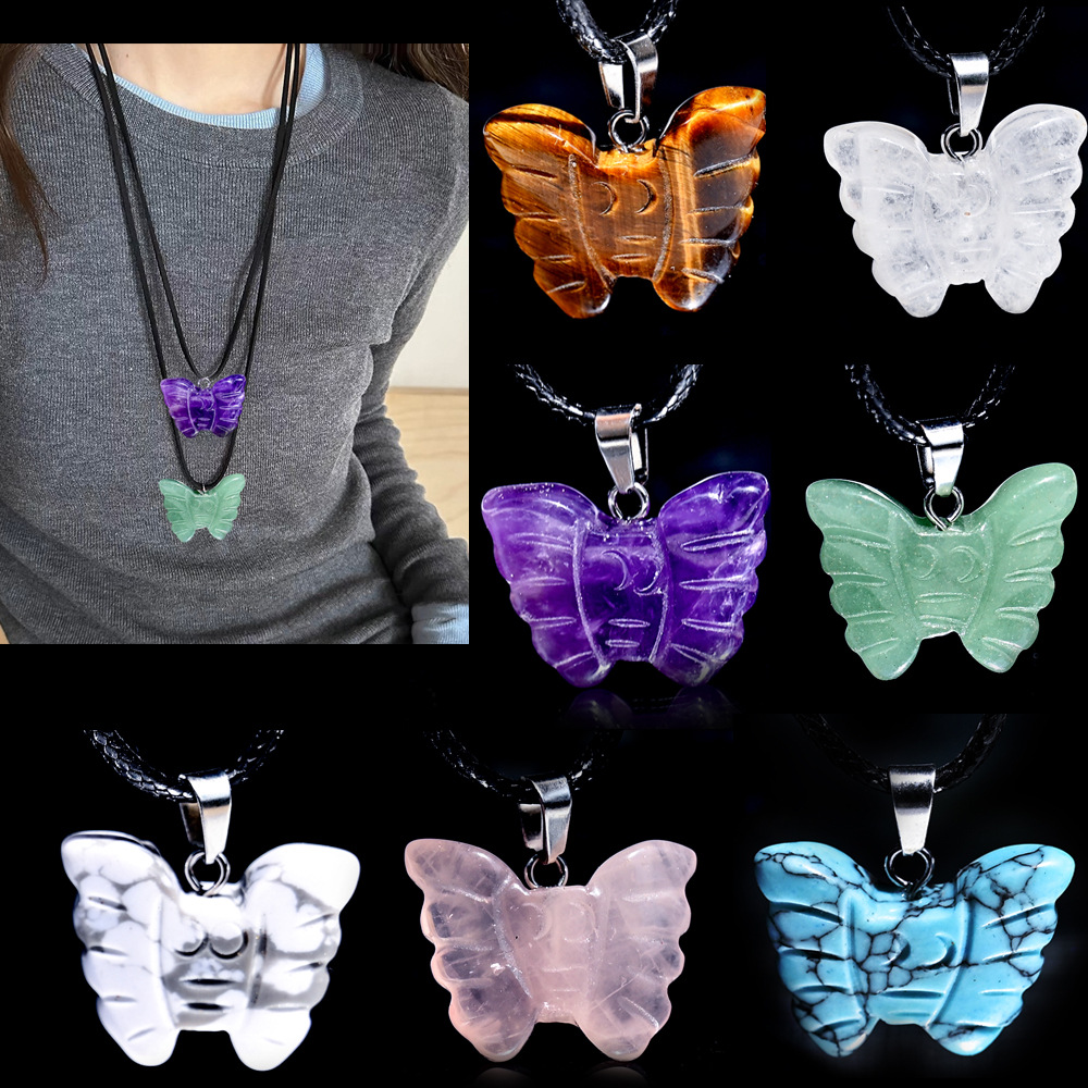 Gemstone Pendants Jewelry Natural Stone Butterfly DIY nickel lead & cadmium free Sold By PC
