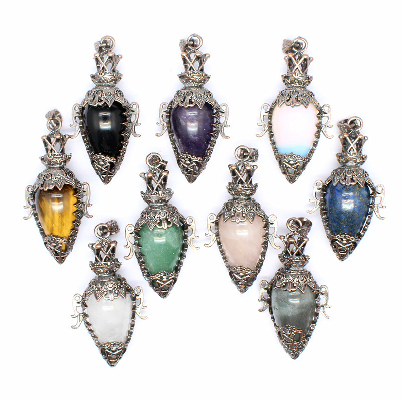 Gemstone Pendants Jewelry, Brass, with Gemstone, plated, DIY & with rhinestone, more colors for choice, nickel, lead & cadmium free, 13.07x6.14x22.38mm, Sold By PC
