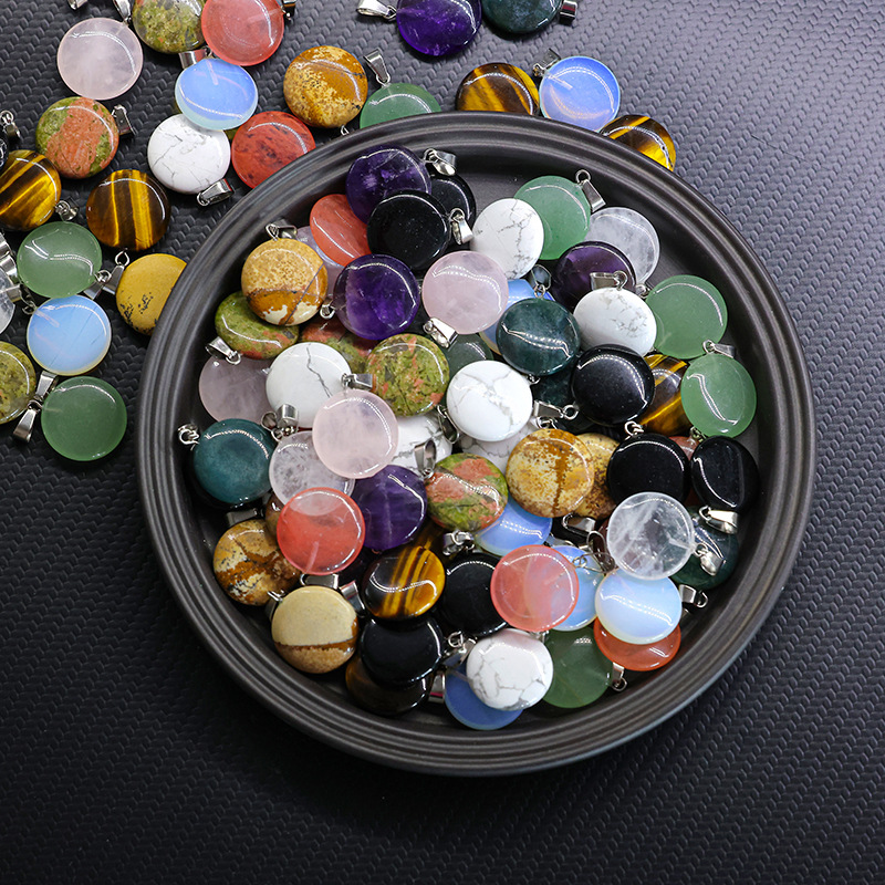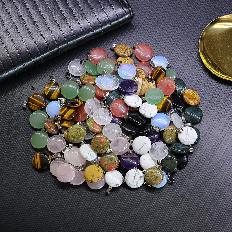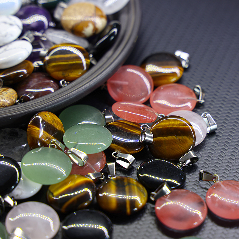 Gemstone Pendants Jewelry with Iron & 304 Stainless Steel Flat Round DIY Sold By PC