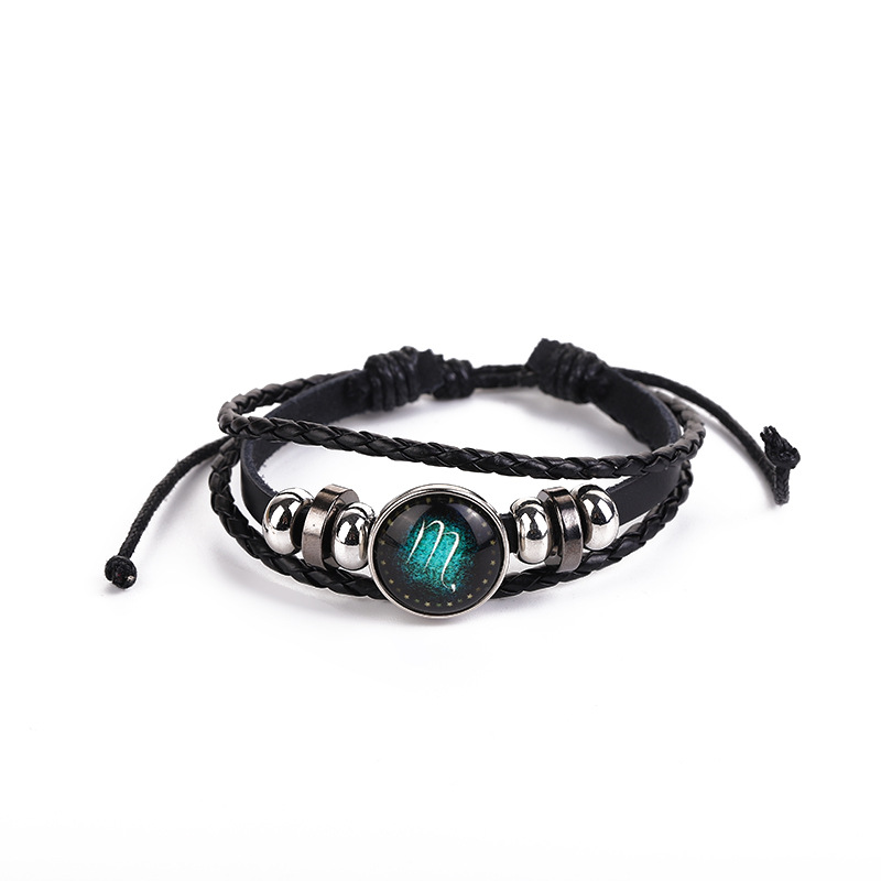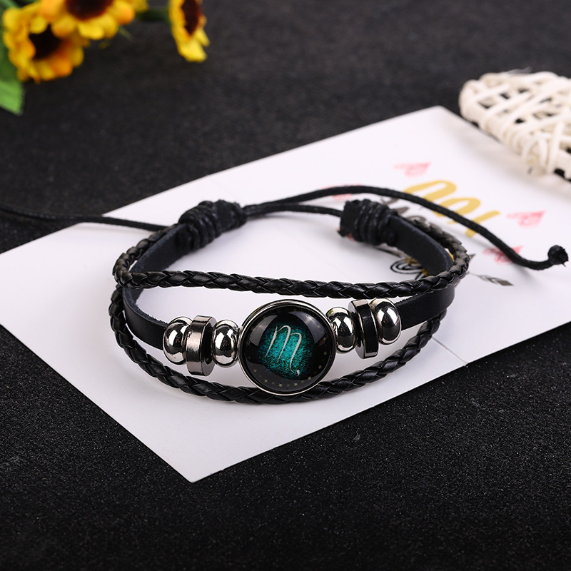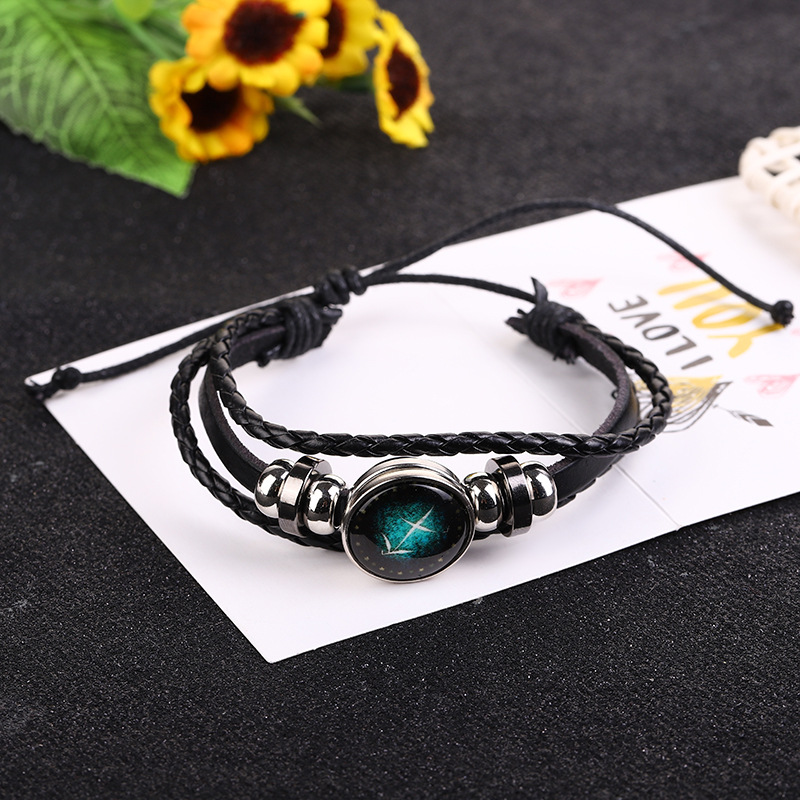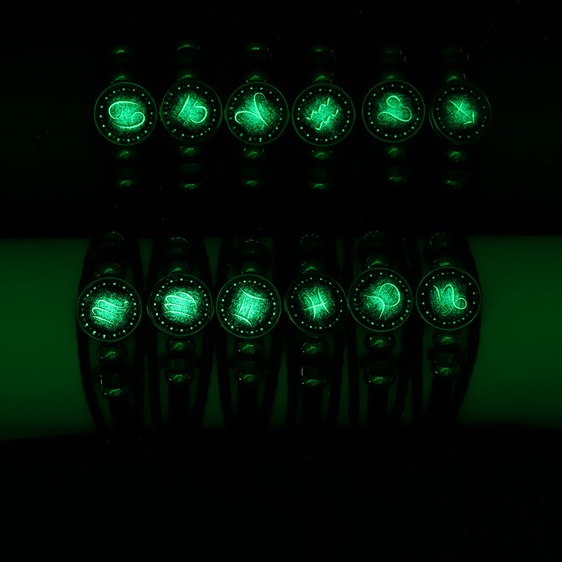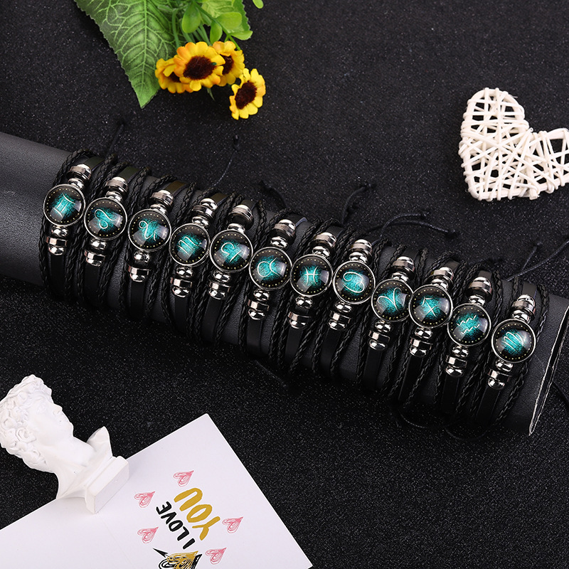 Glass Bracelet with PU Leather & Cowhide 12 Signs of the Zodiac handmade Unisex & luminated Length Approx 6-10 Inch Sold By PC