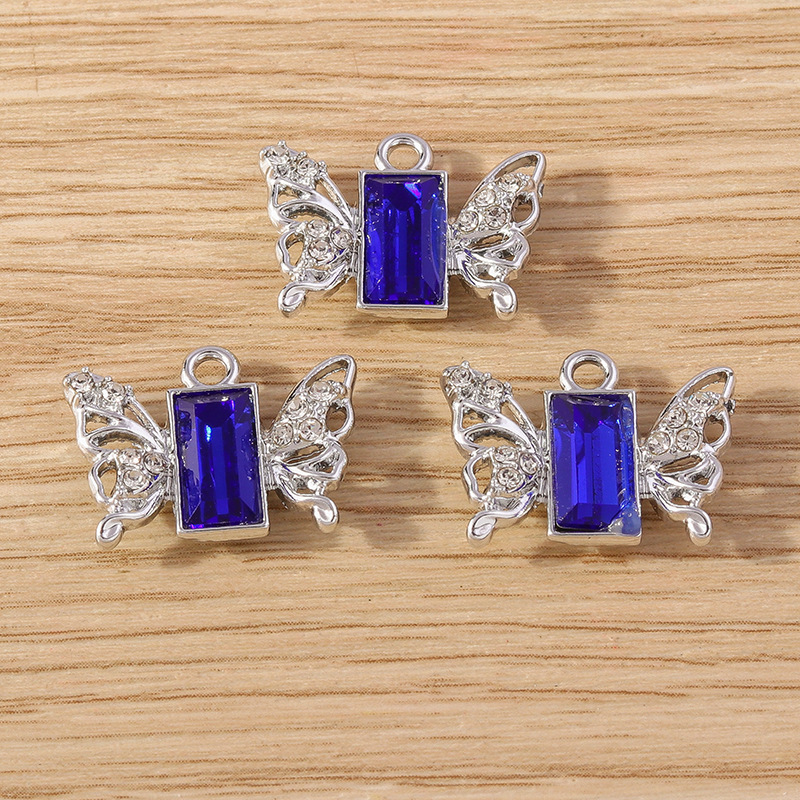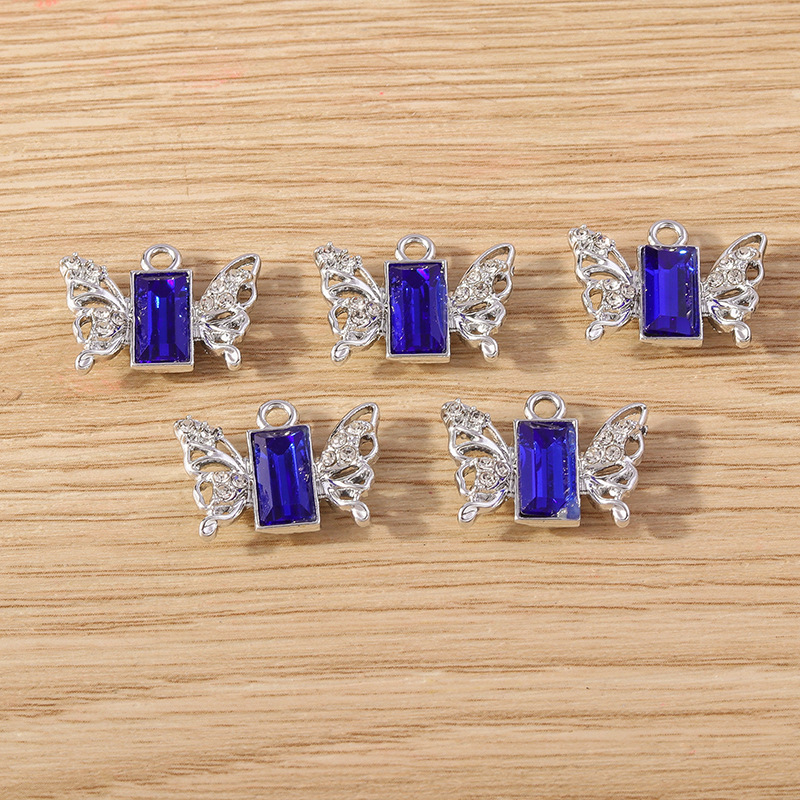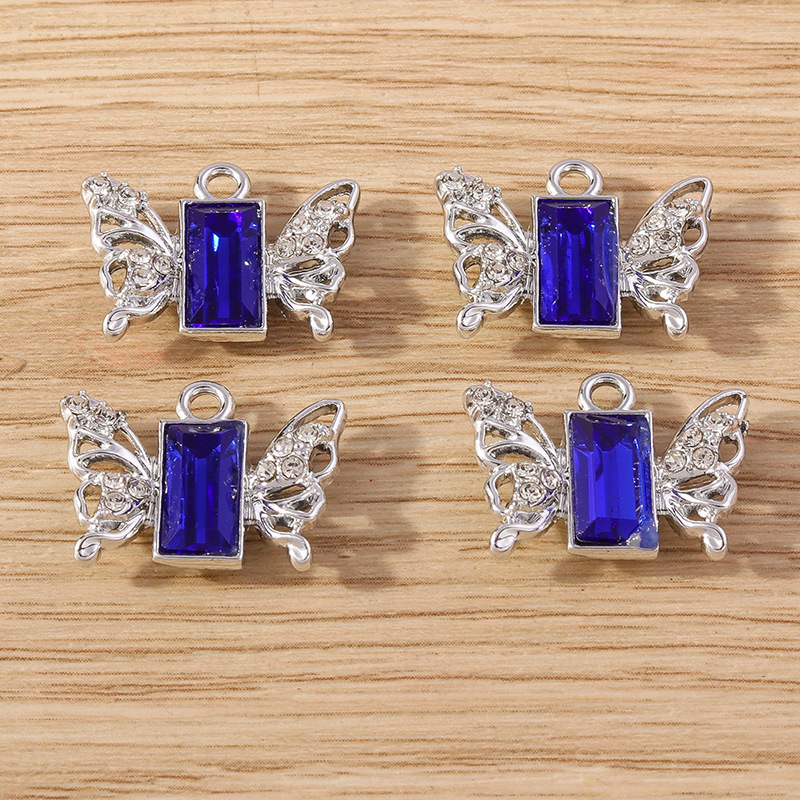 Glass Zinc Alloy Pendant with Glass Butterfly plated DIY & with rhinestone Sold By Bag