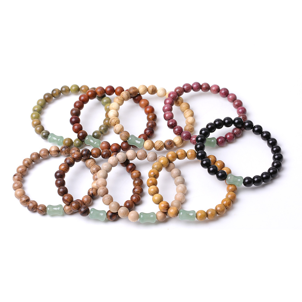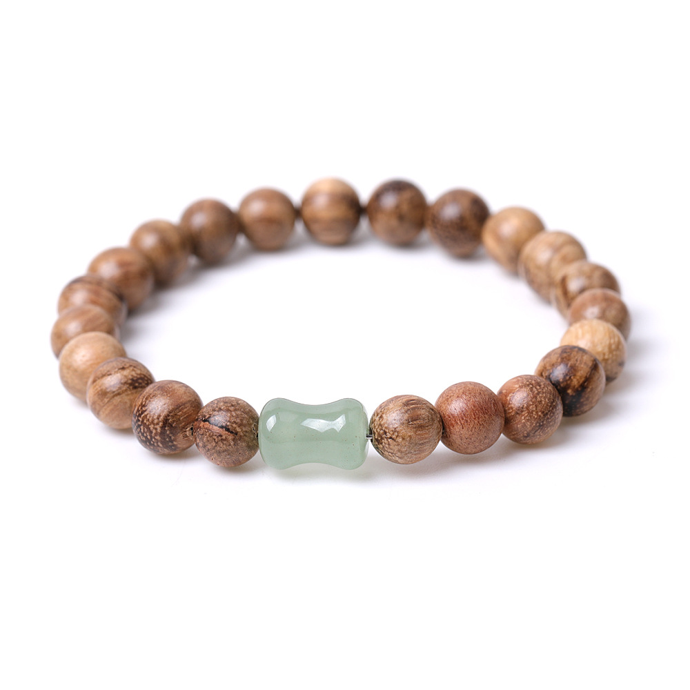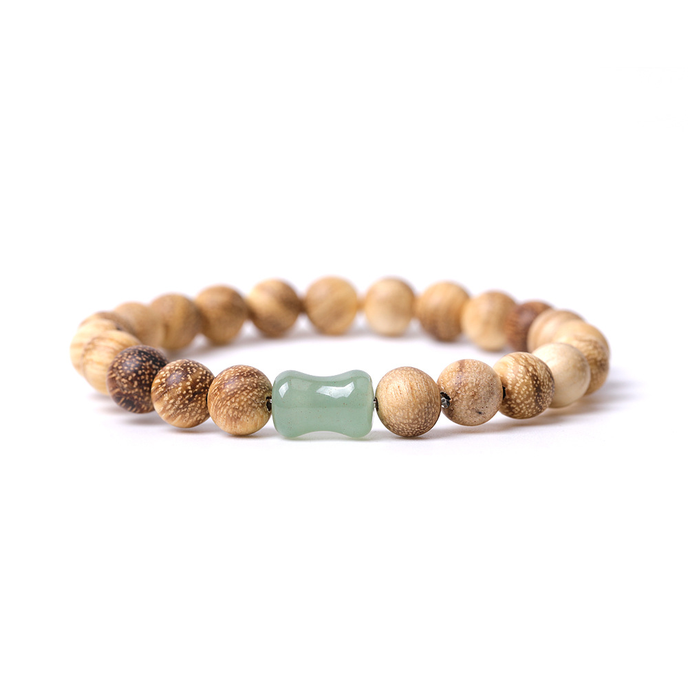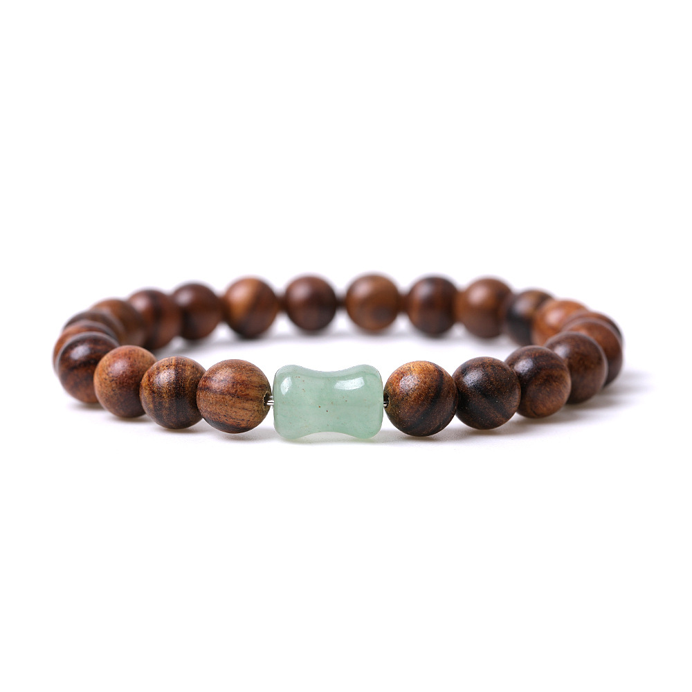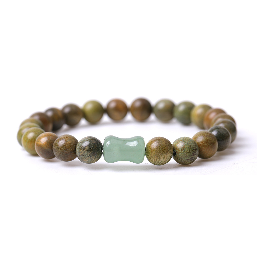 Green Aventurine Bracelet with Elastic Thread & Wood fashion jewelry & Unisex handmade Sold By PC