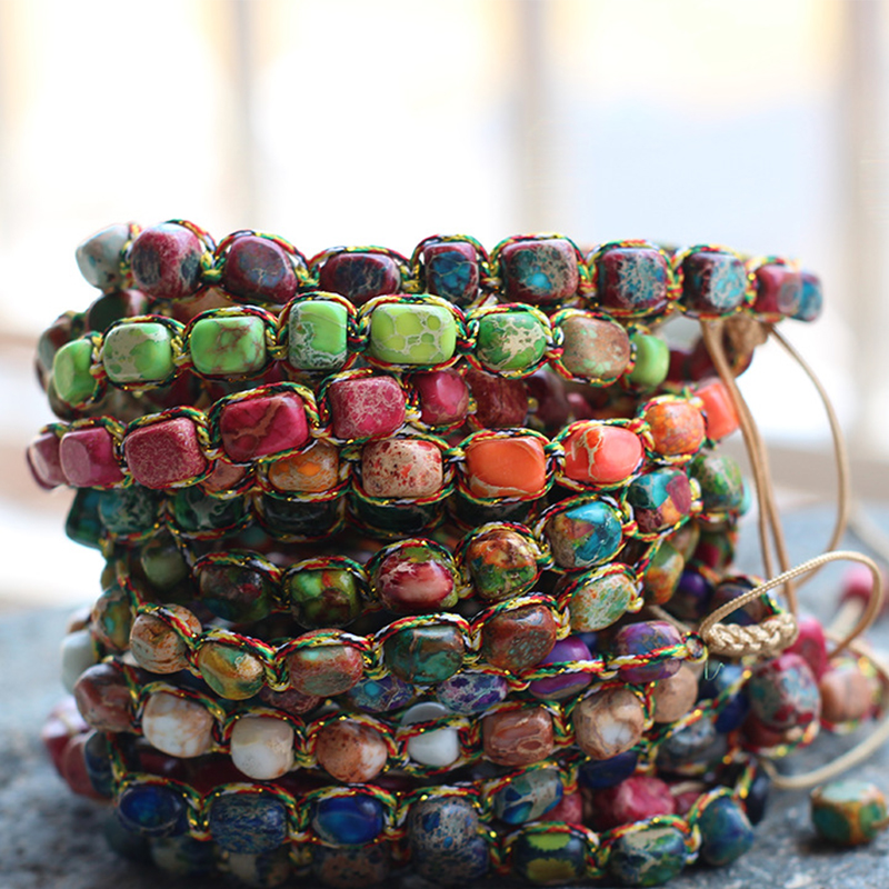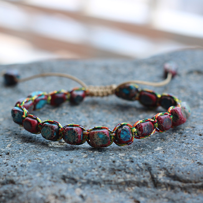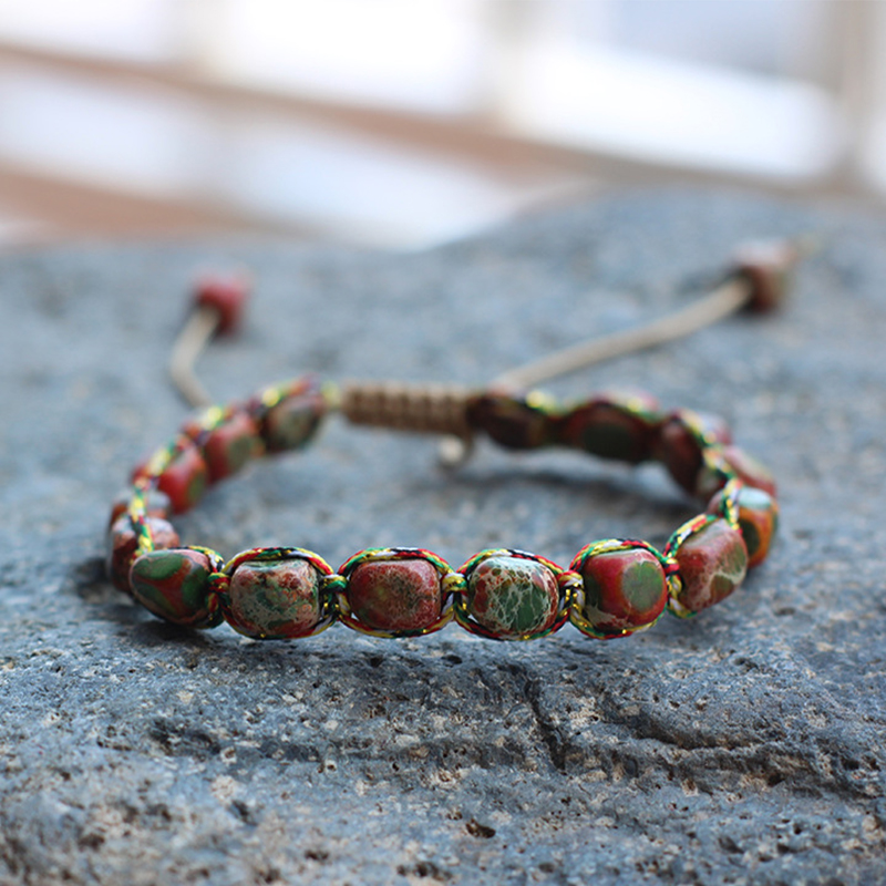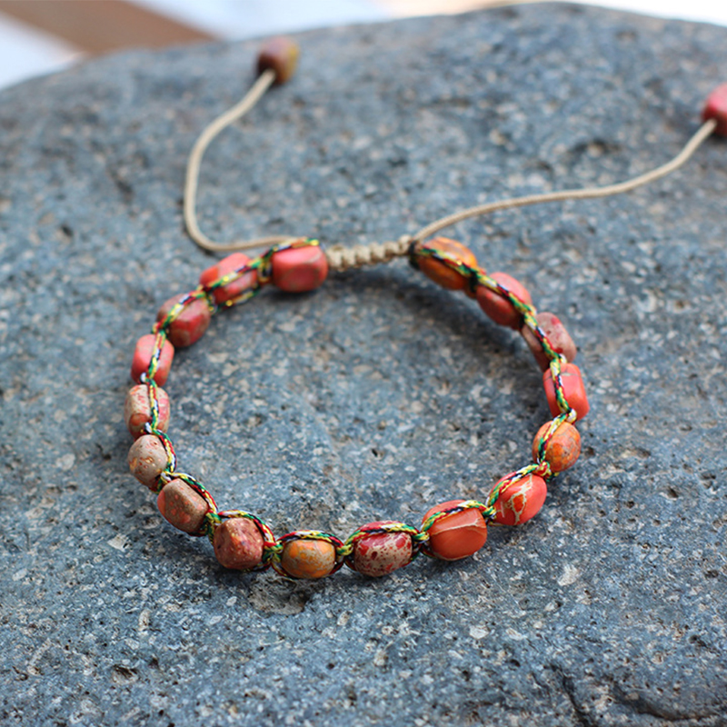 Impression Jasper Bracelet with Nylon Cord Unisex & adjustable Nuggets beads length Inner Approx 15mm Sold By PC