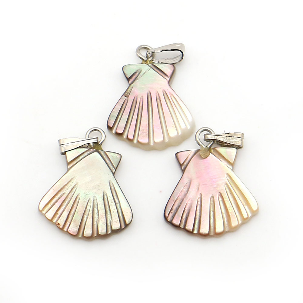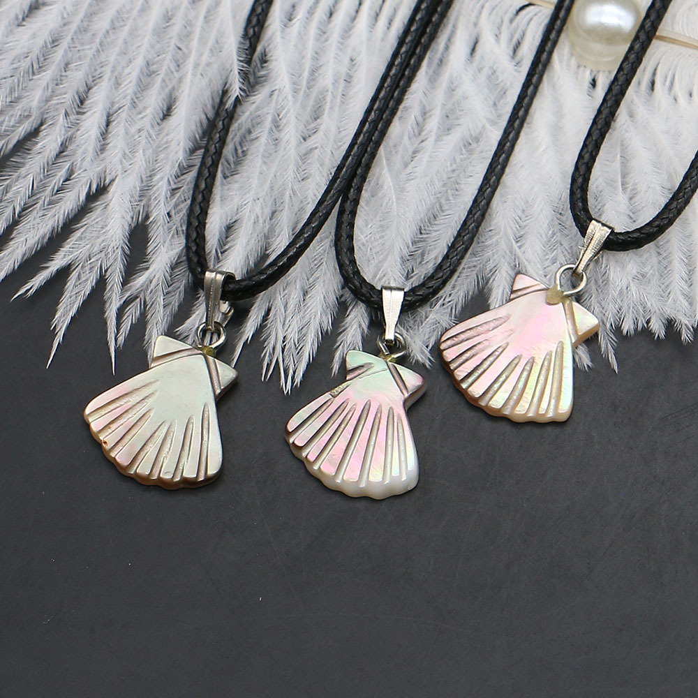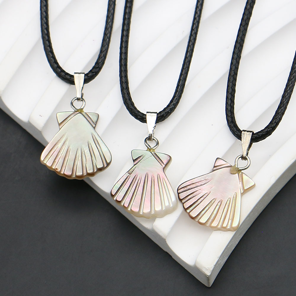 Black Lip Shell Pendant with Wax Cord & Iron DIY mixed colors Length 45 cm Sold By PC