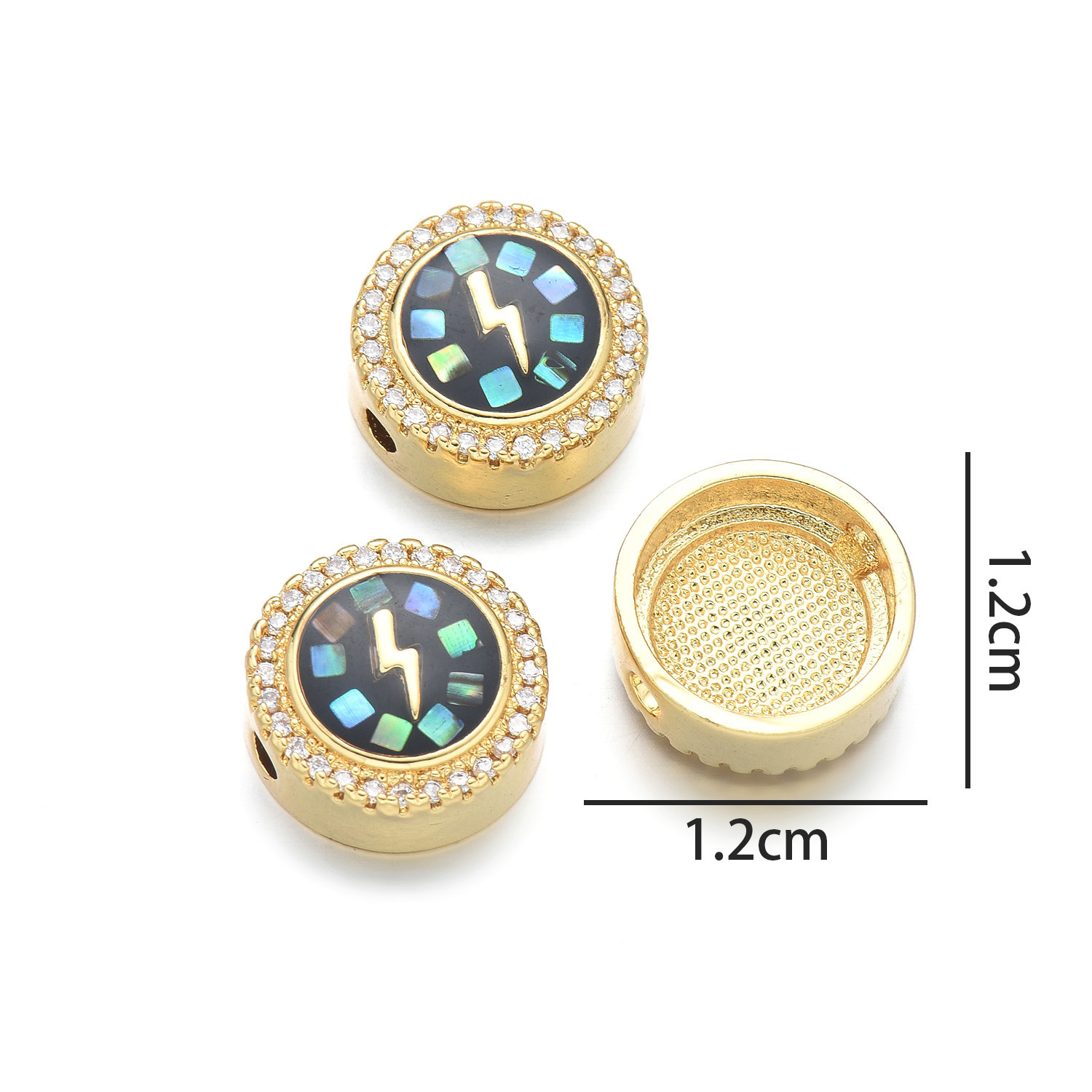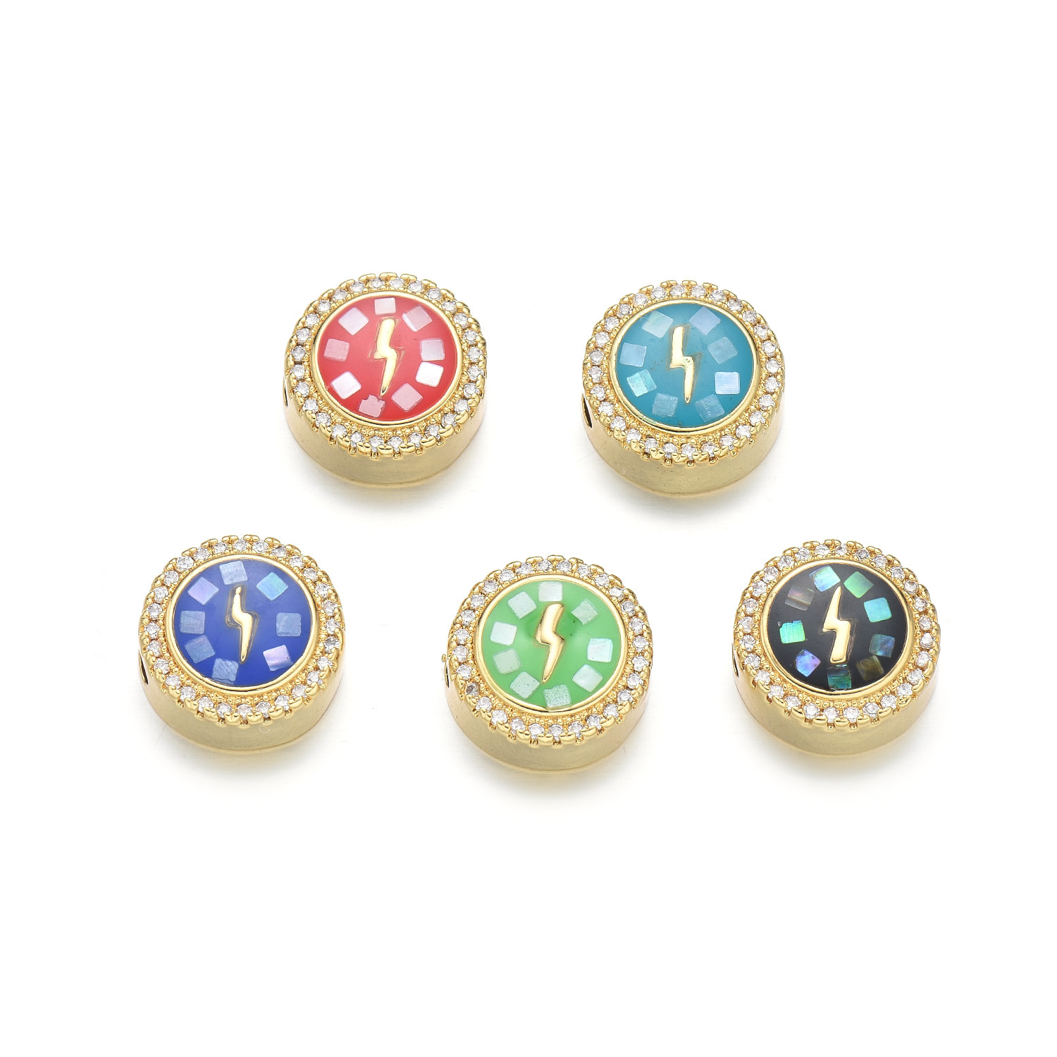 Natural Colored Shell Beads Brass with Shell plated DIY & micro pave cubic zirconia & enamel nickel lead & cadmium free Sold By PC
