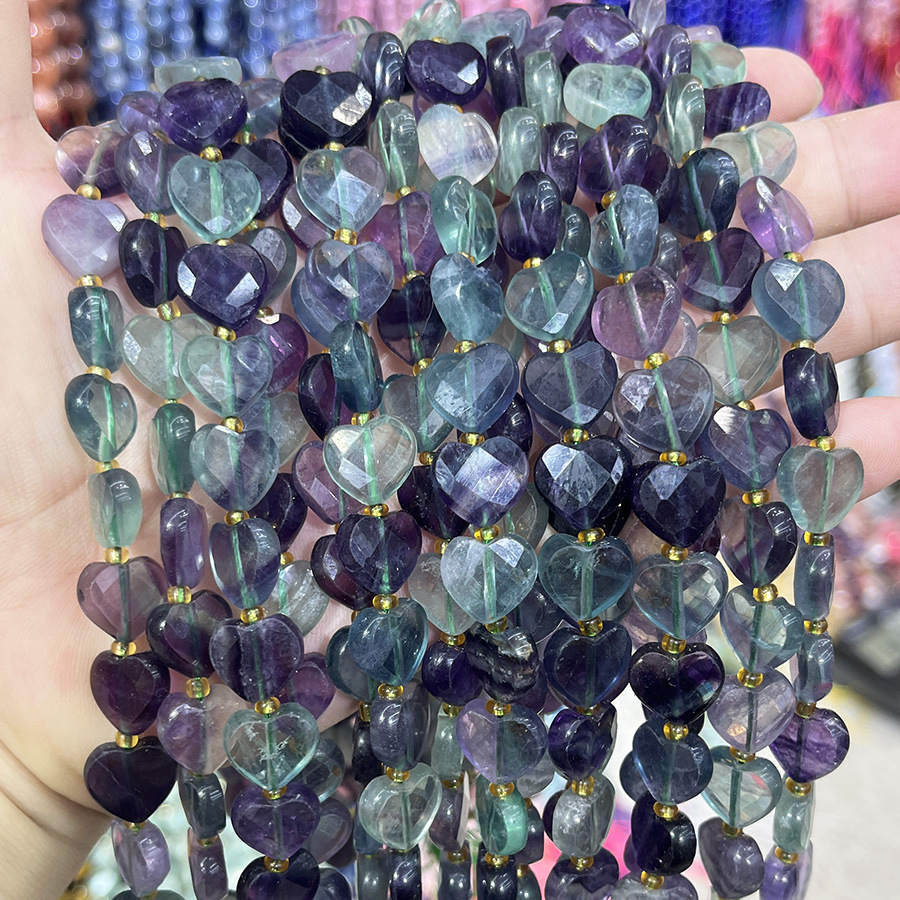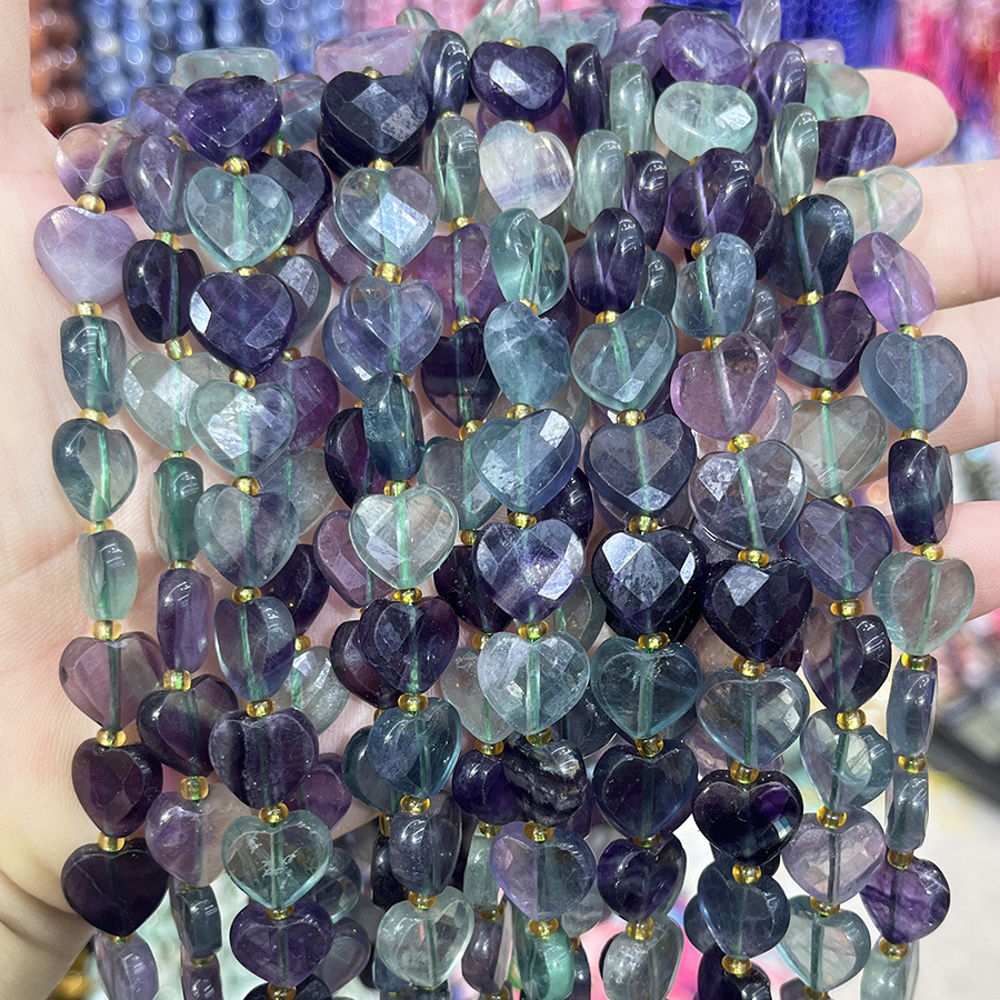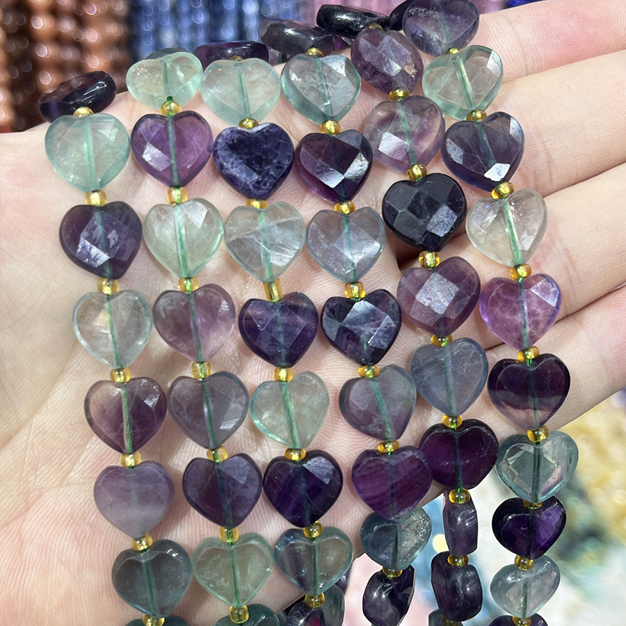 Natural Fluorite Beads Colorful Fluorite with Seedbead Heart DIY mixed colors 12mm Sold Per 38 cm Strand