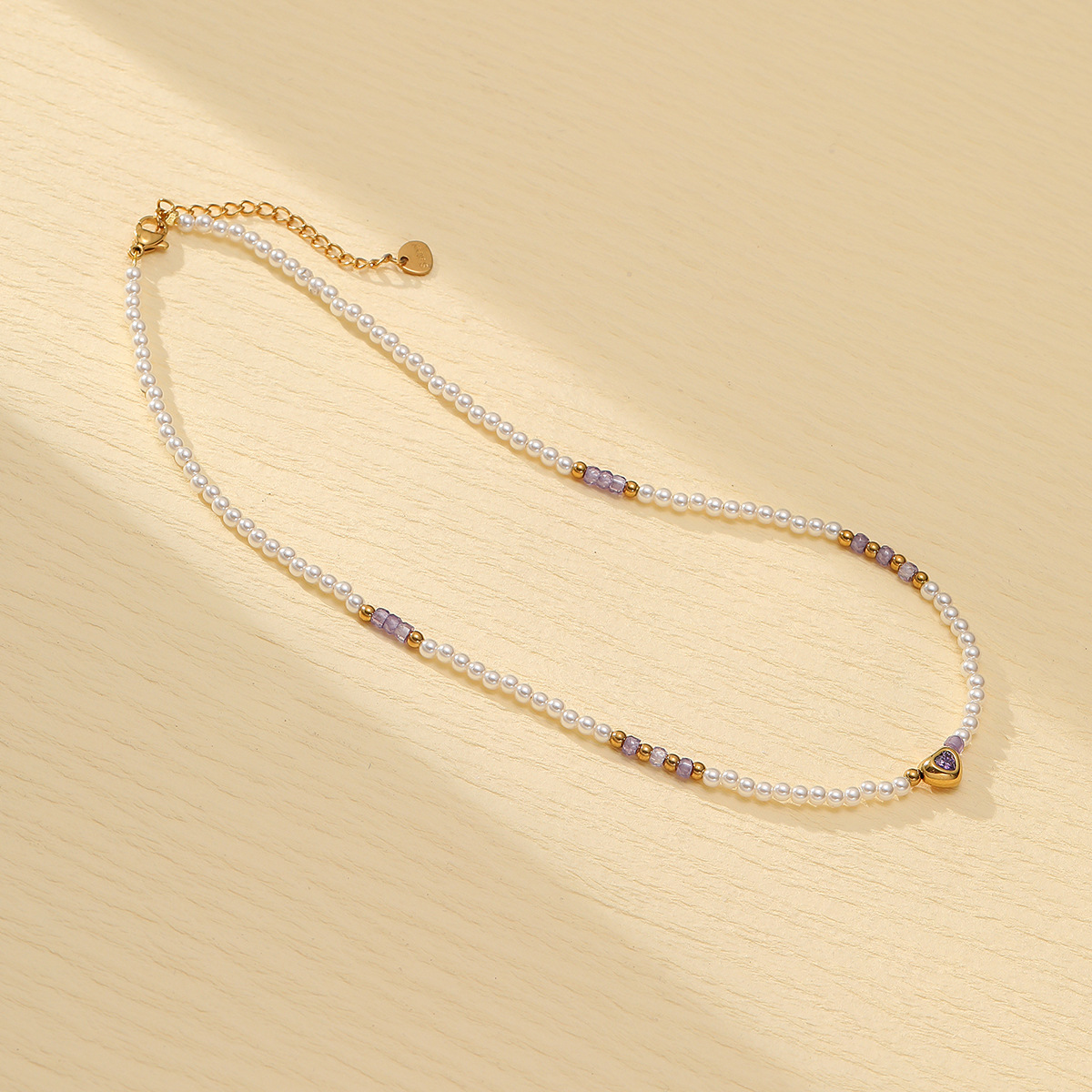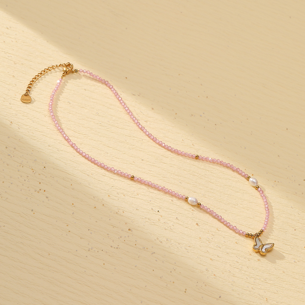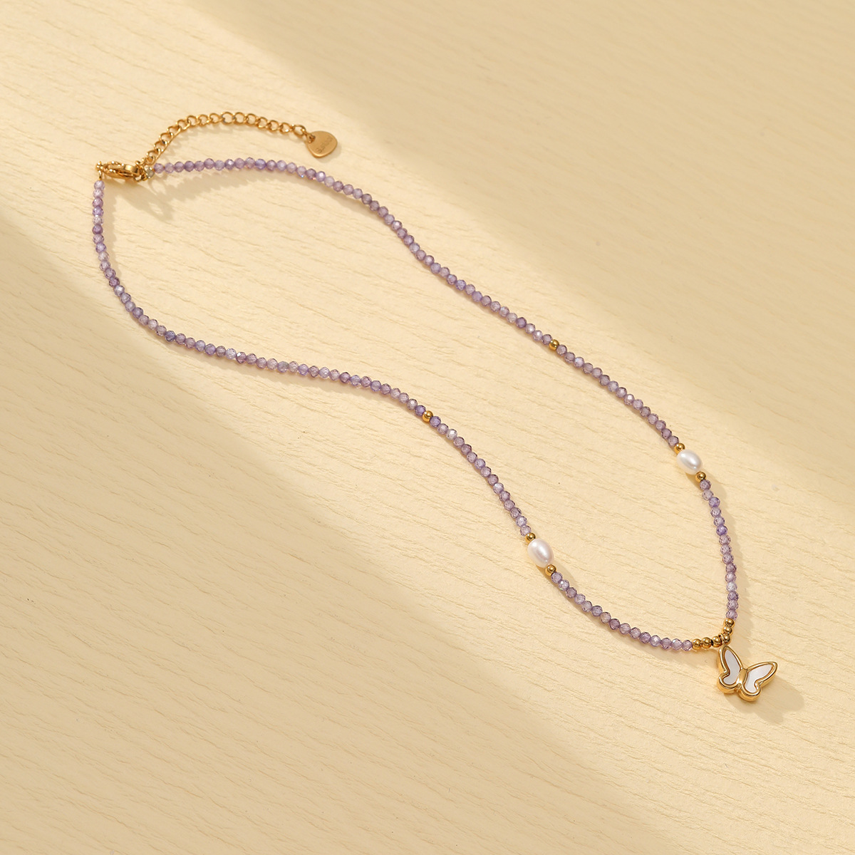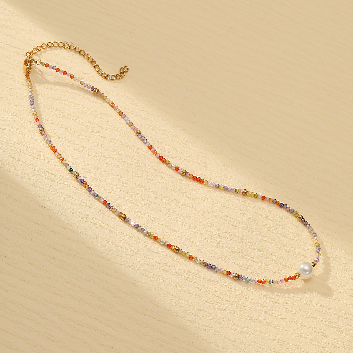 Natural Freshwater Pearl Necklace Titanium Steel with Natural Stone & Freshwater Pearl plated fashion jewelry & for woman multi-colored Sold By PC