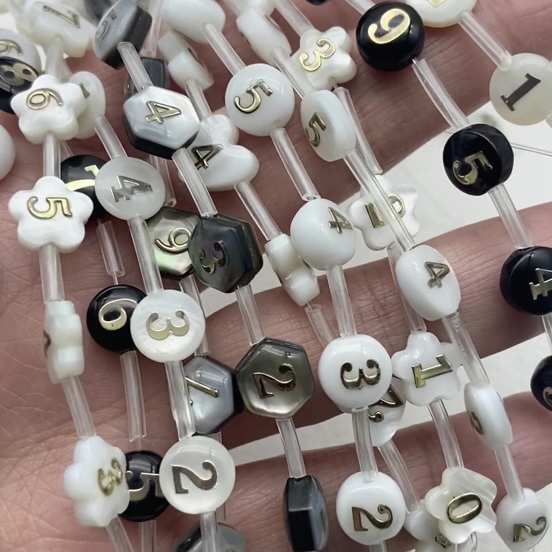 Natural Freshwater Shell Beads with Lampwork Round epoxy gel DIY & with number pattern 8mm Sold By Set