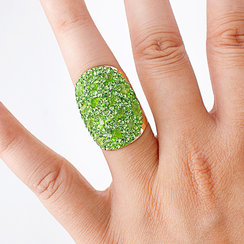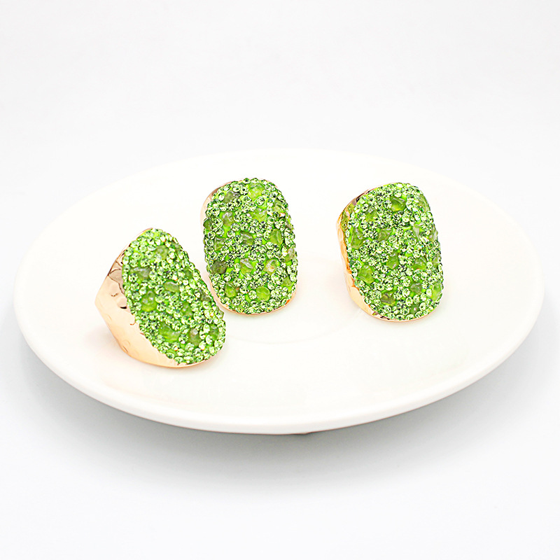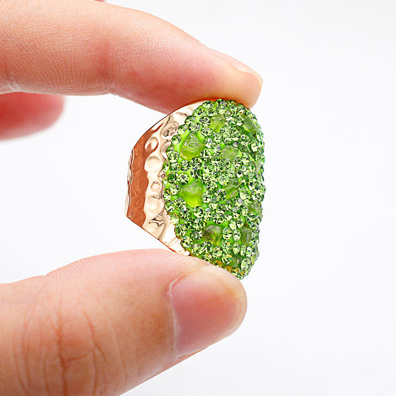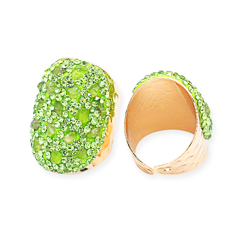 Brass Cuff Finger Ring with Peridot Stone gold color plated for woman & with rhinestone green nickel lead & cadmium free inner ~20mm Sold By PC