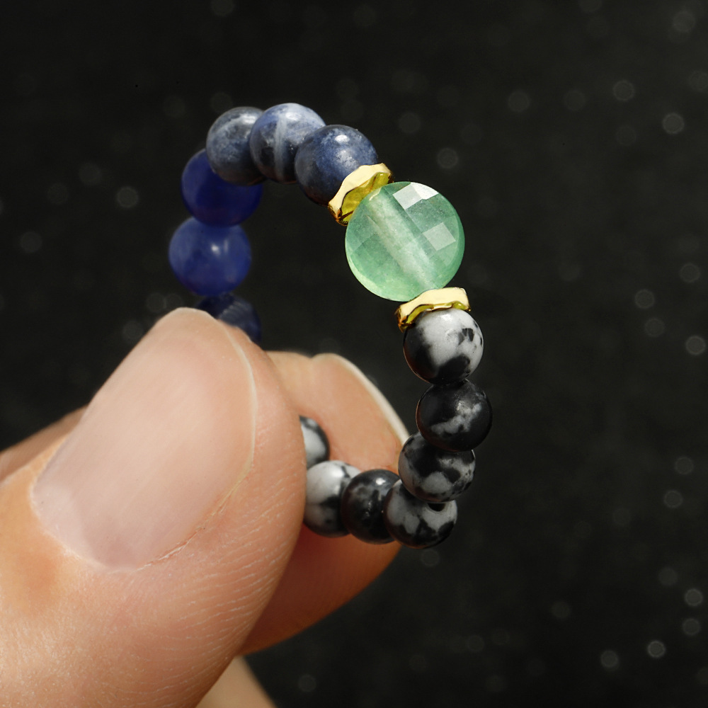 Natural Gemstone Finger Ring Natural Stone with Elastic Thread handmade fashion jewelry & elastic & for woman multi-colored US Ring Sold By PC