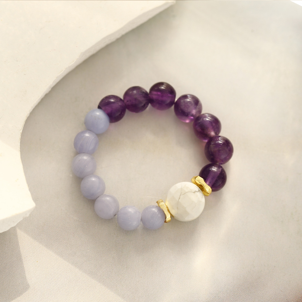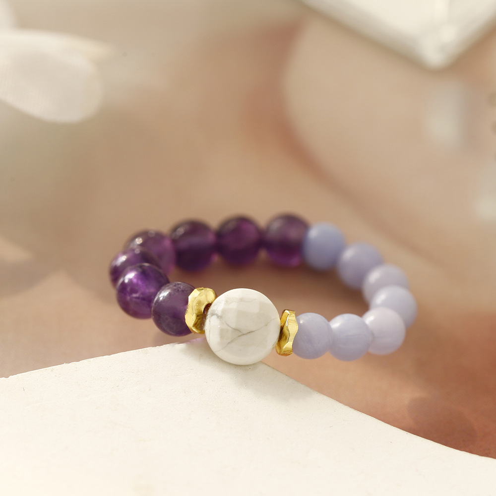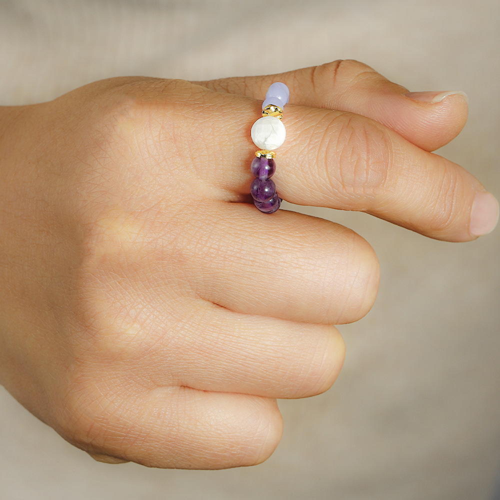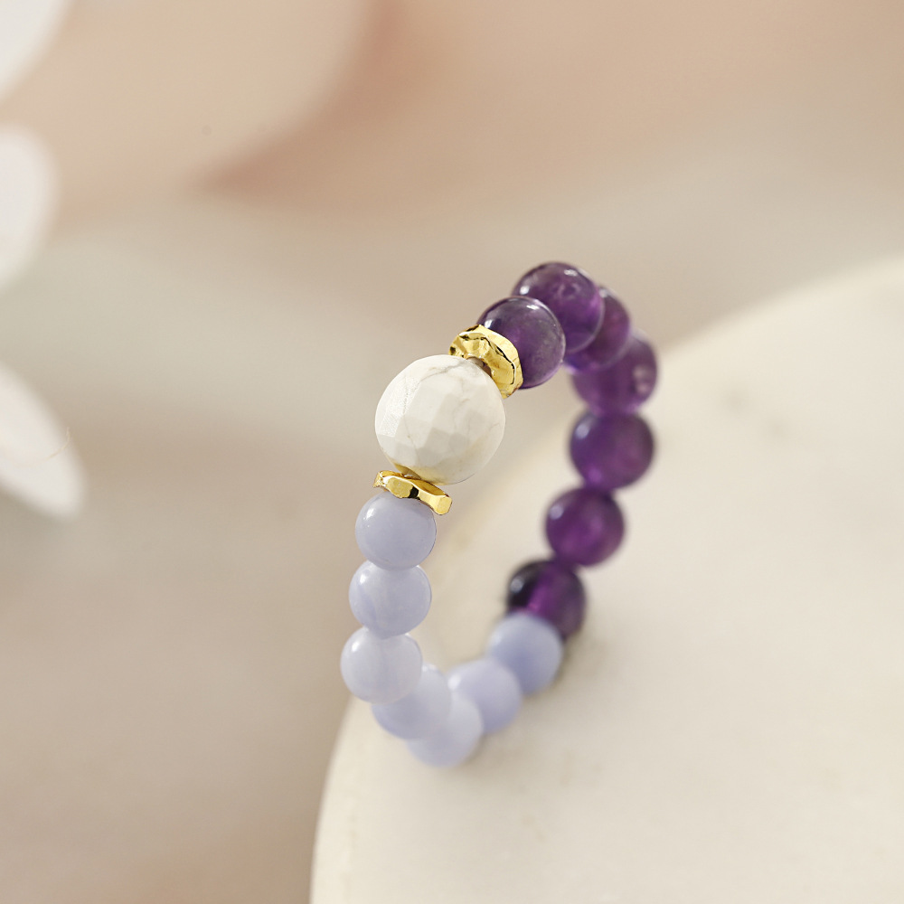 Natural Gemstone Finger Ring Natural Stone with Elastic Thread handmade fashion jewelry & elastic & for woman multi-colored US Ring Sold By PC