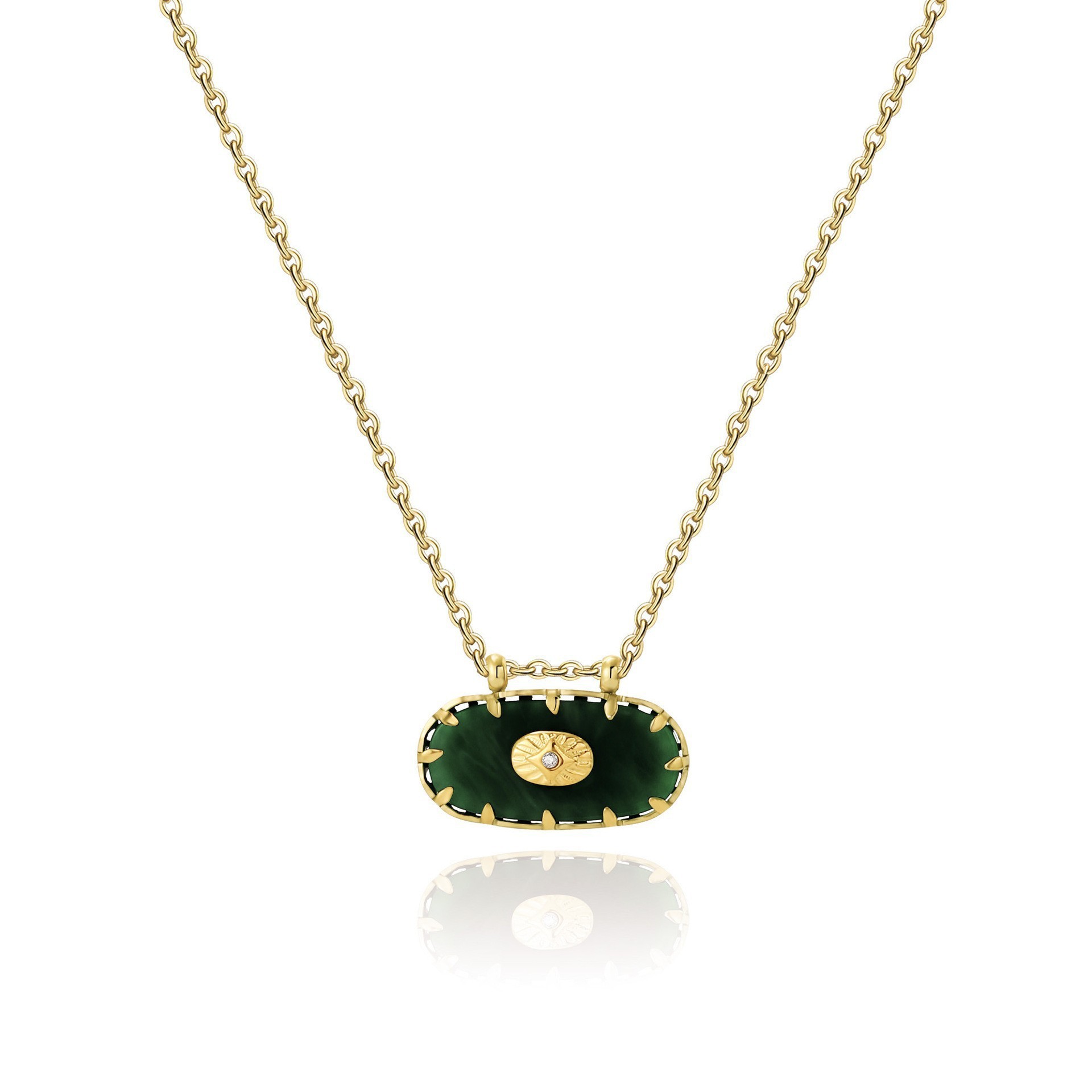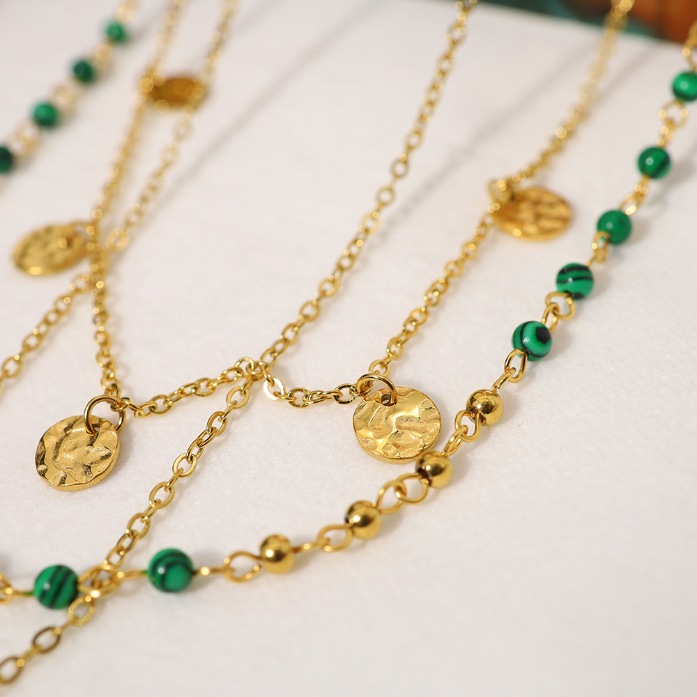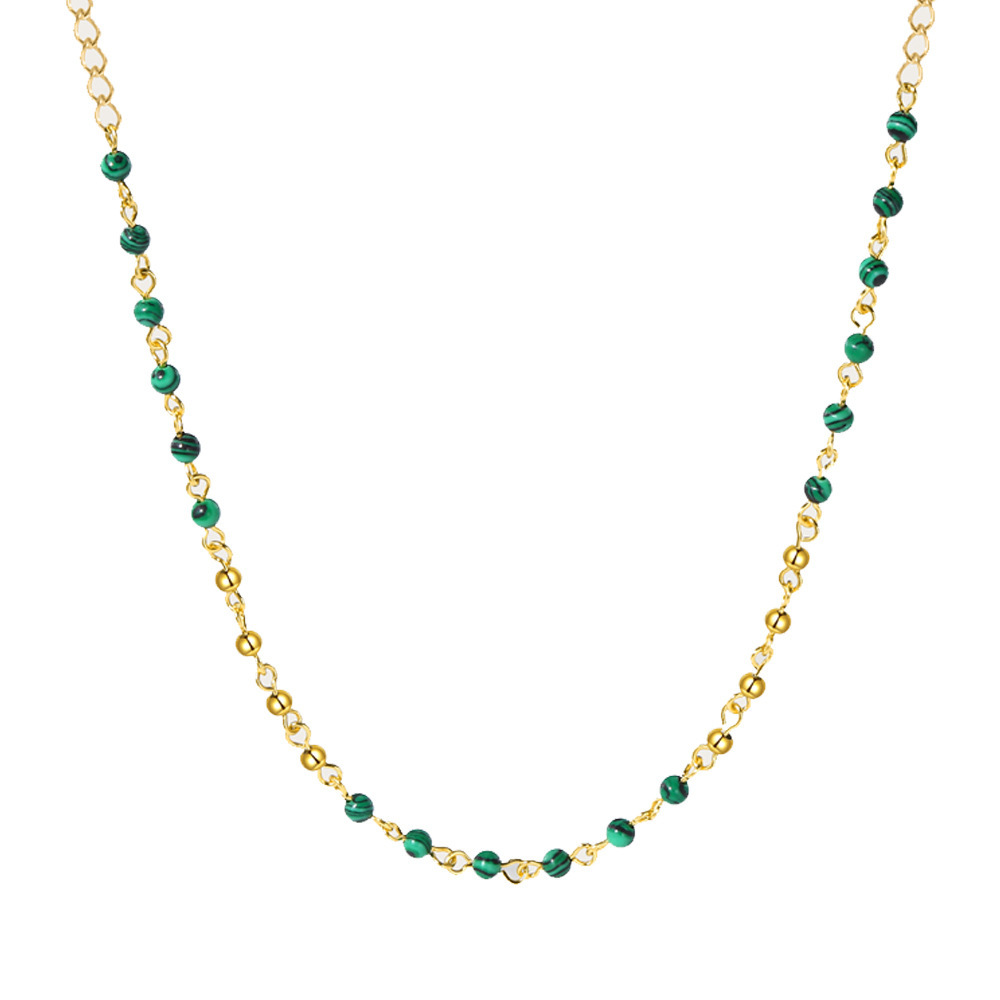Natural Gemstone Necklace 304 Stainless Steel with Malachite with 6cm extender chain 18K gold plated fashion jewelry & for woman Length 45 cm Sold By PC