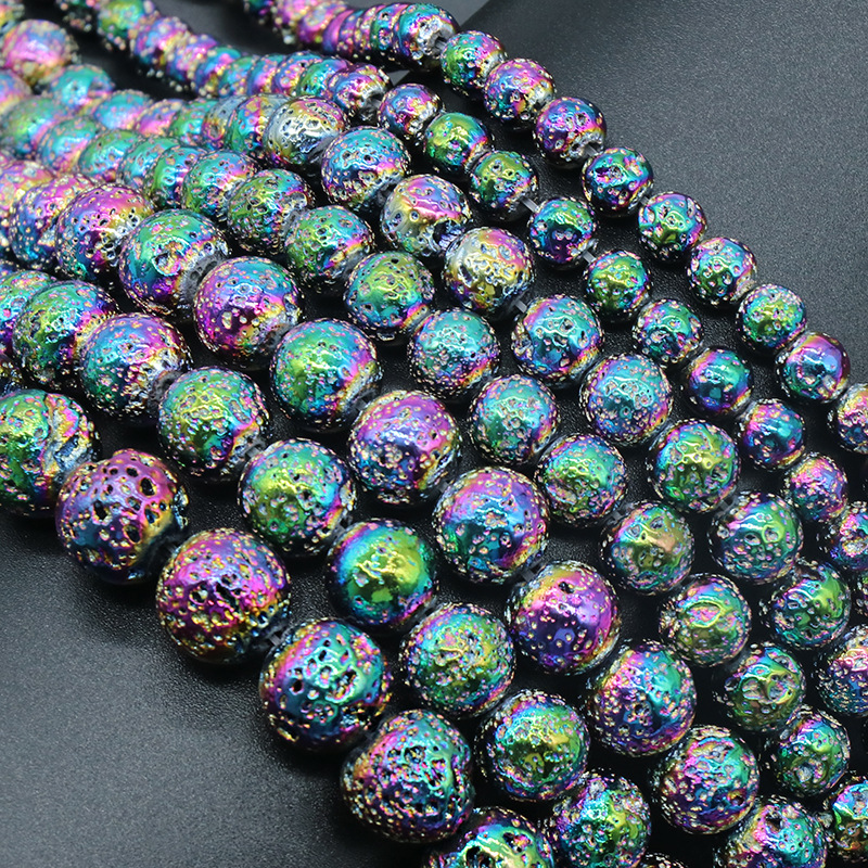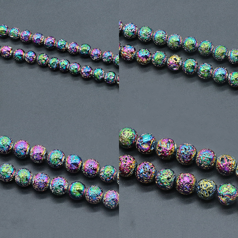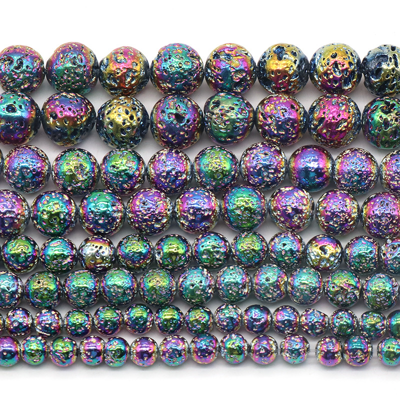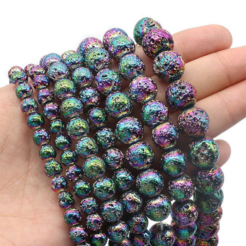 Natural Lava Beads Round plated DIY multi-colored Sold By Strand
