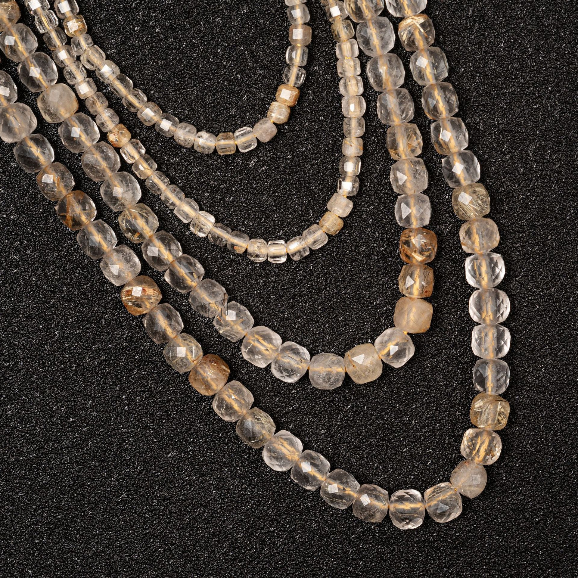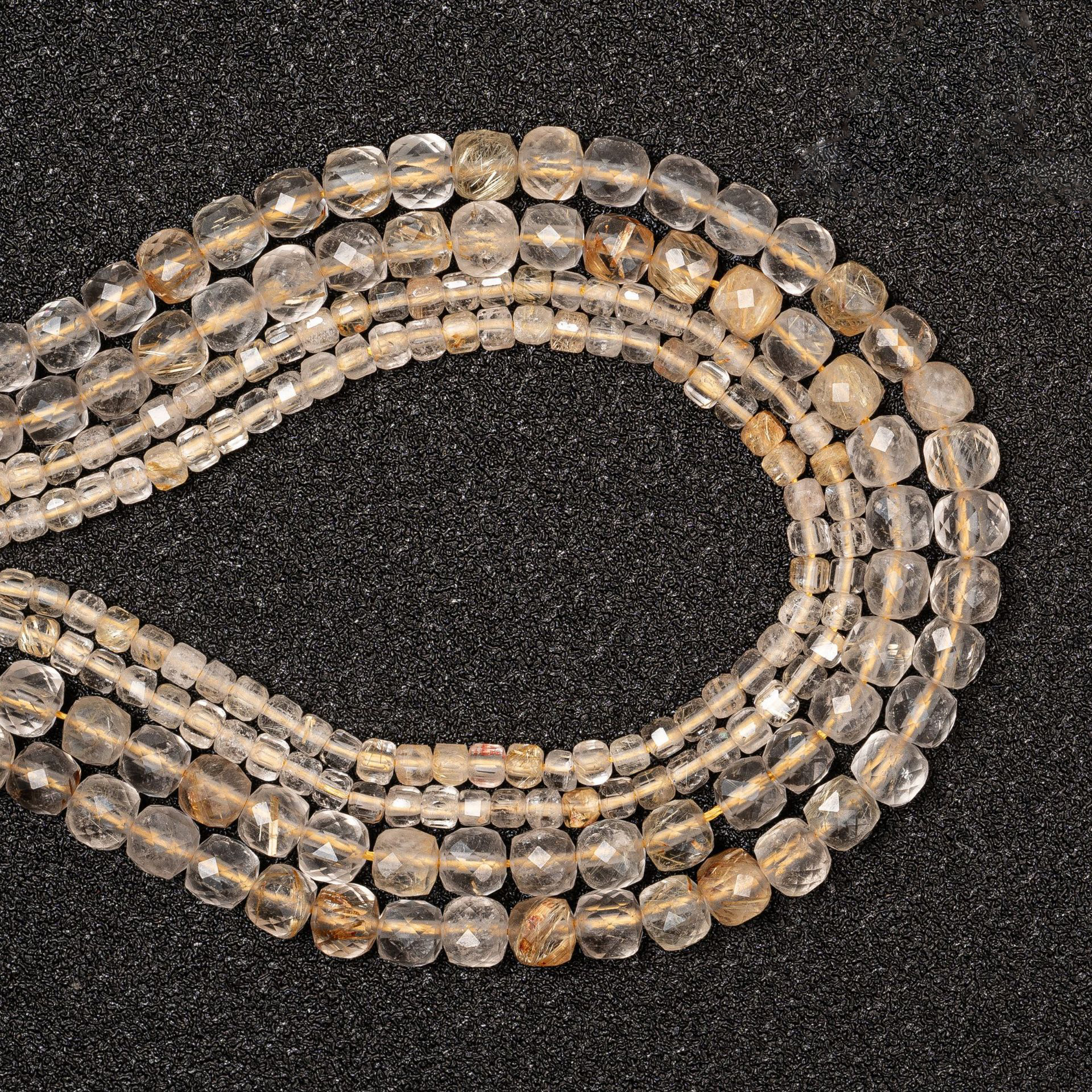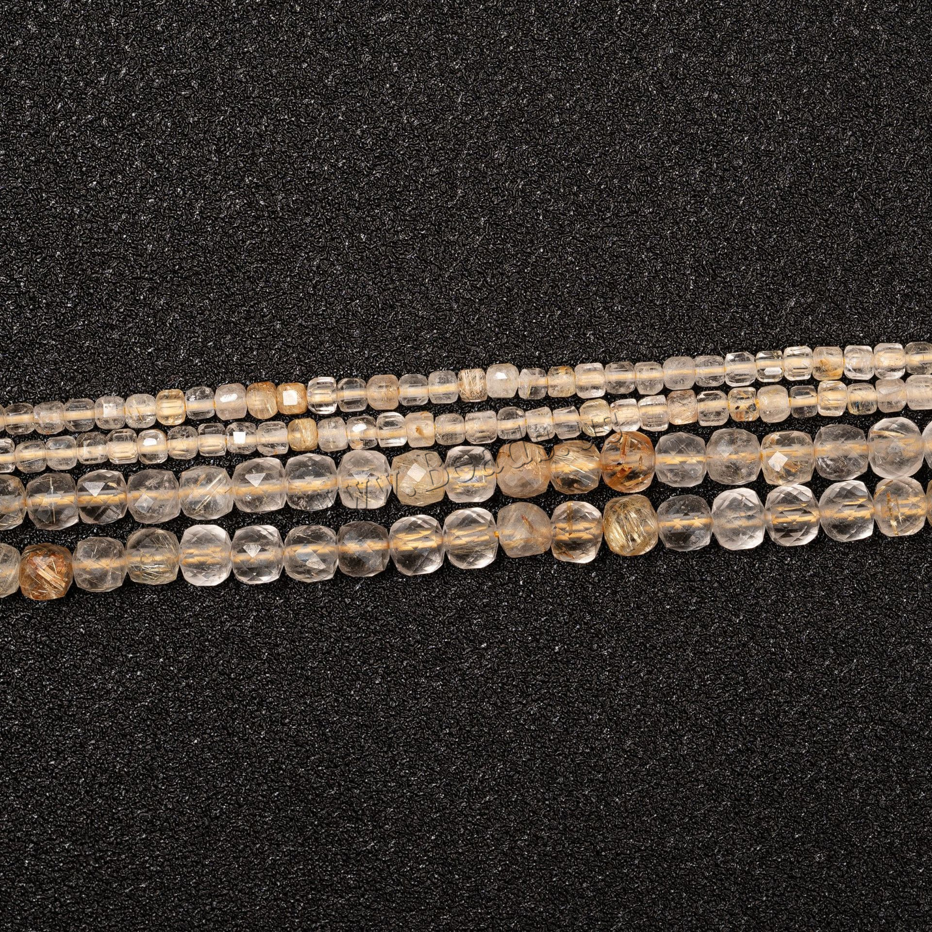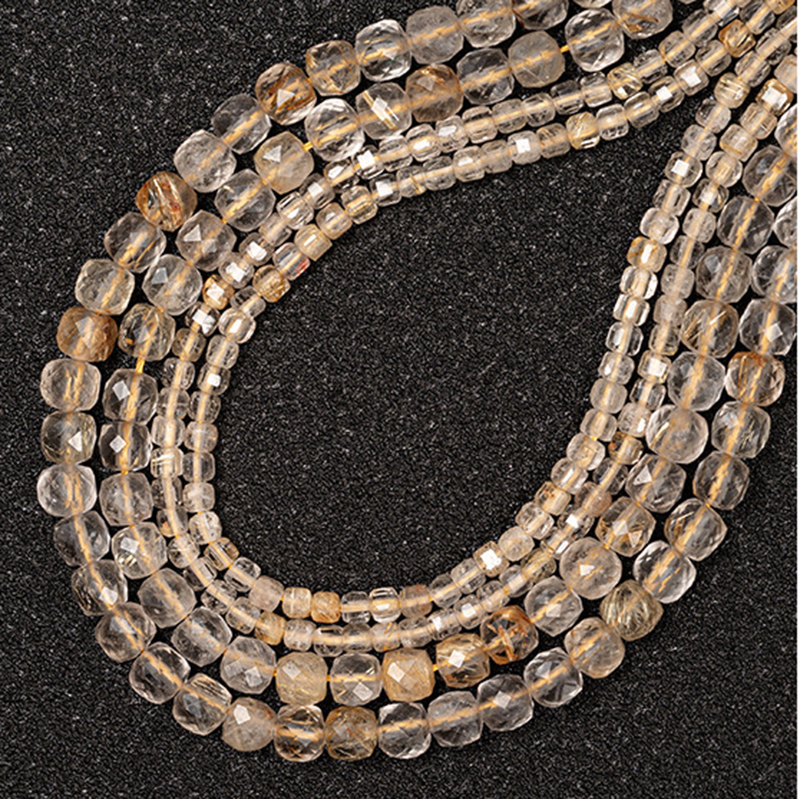 Natural Quartz Jewelry Beads Rutilated Quartz Square DIY golden Sold Per Approx 38 cm Strand