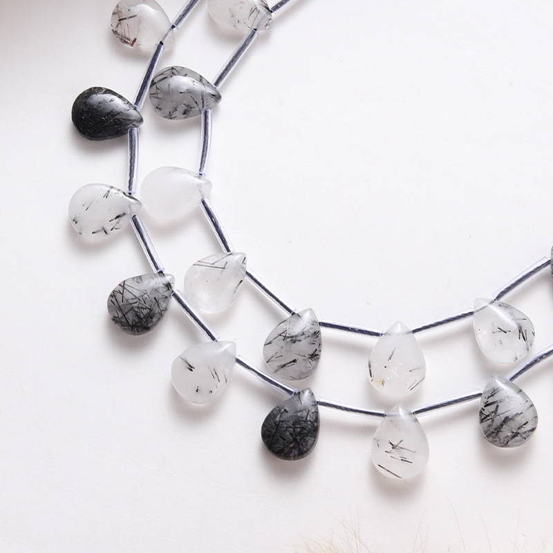 Natural Quartz Jewelry Beads Tourmalinated Quartz Teardrop DIY mixed colors Sold Per 38 cm Strand