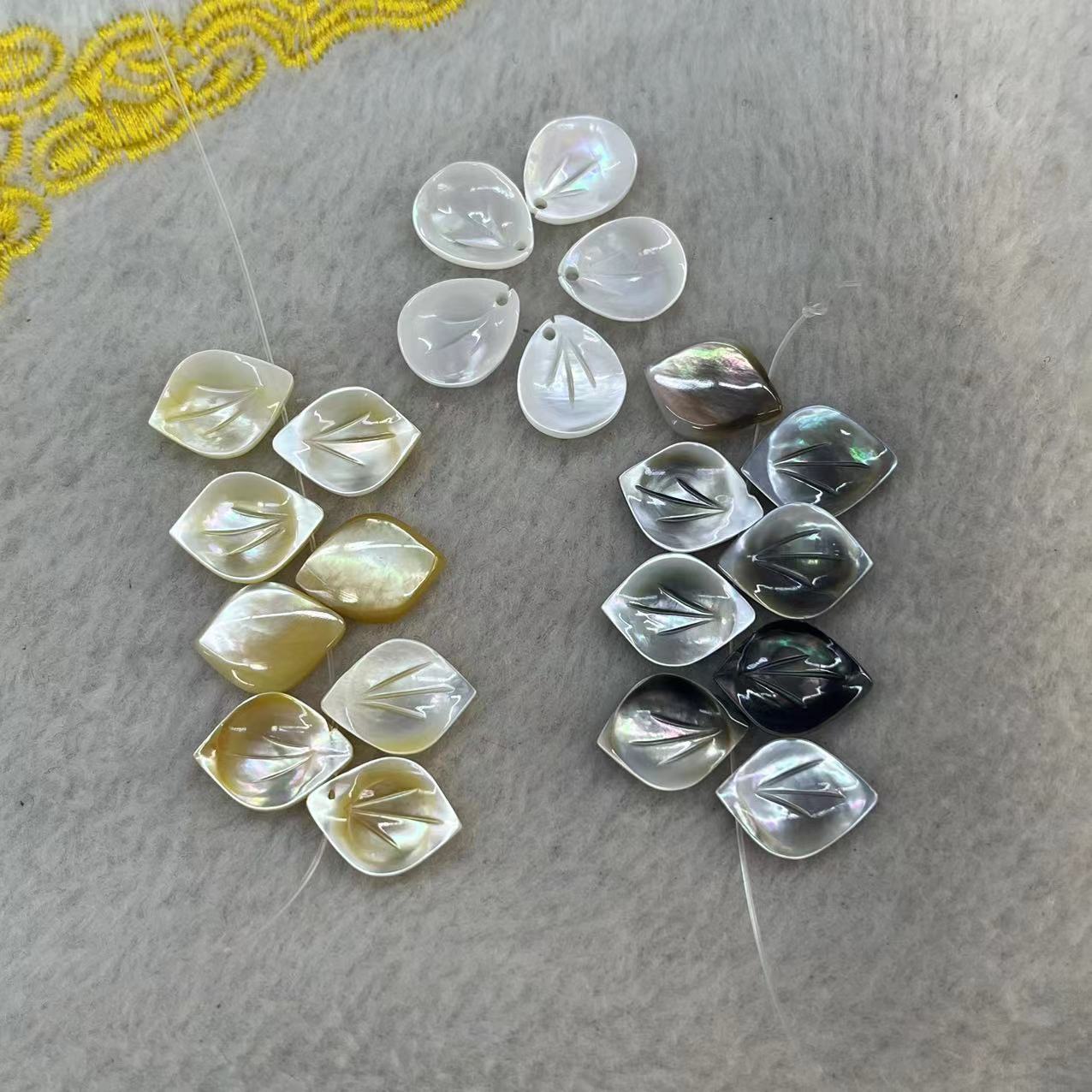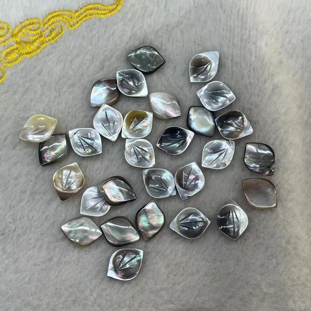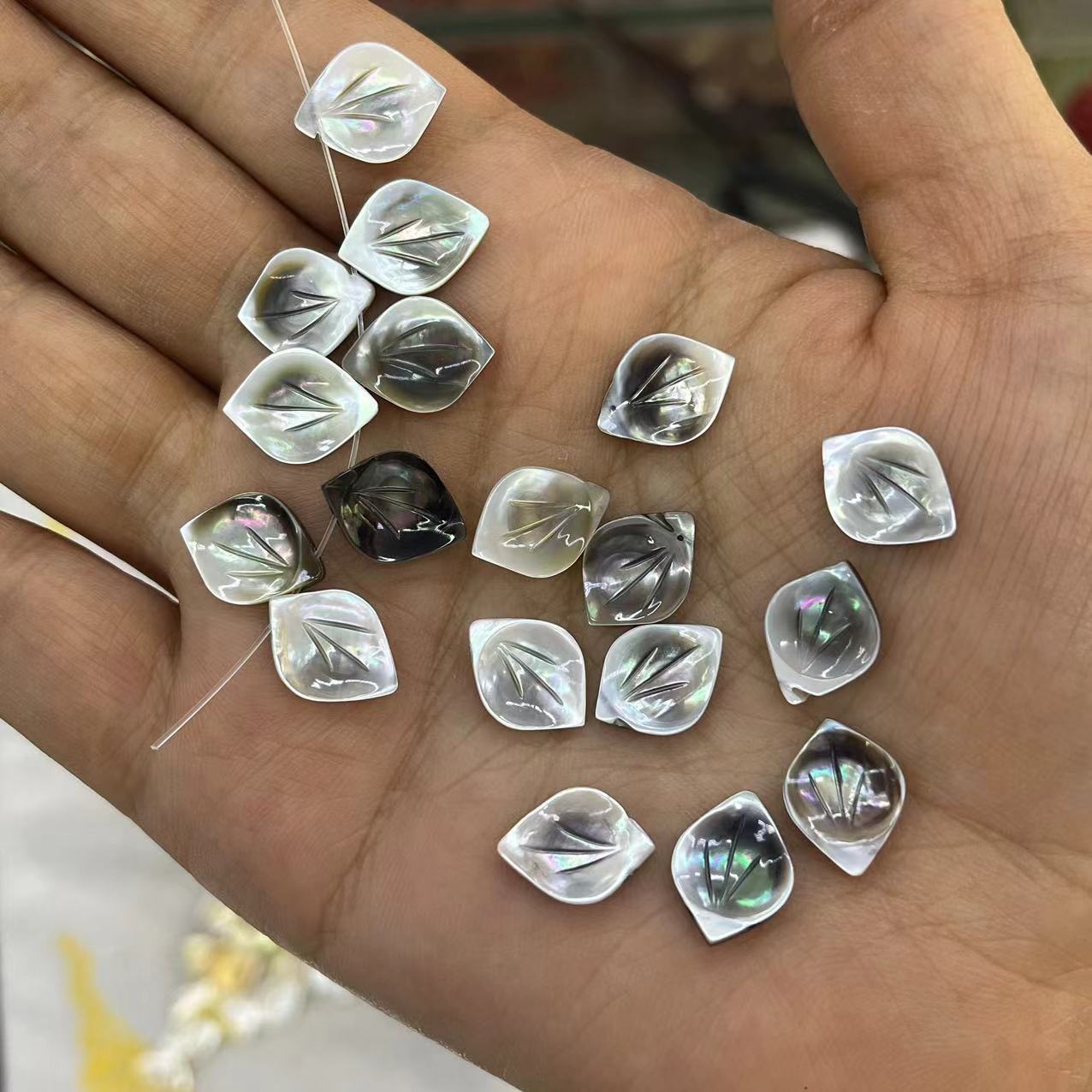 Black Shell Beads with American Shell & Yellow Shell Leaf Carved DIY Sold By PC