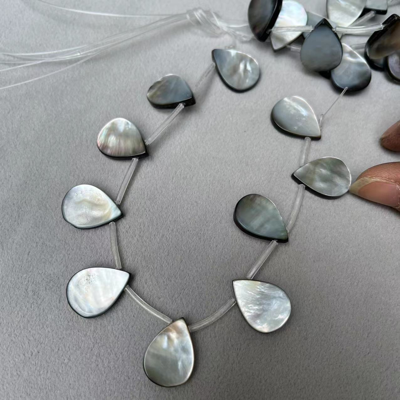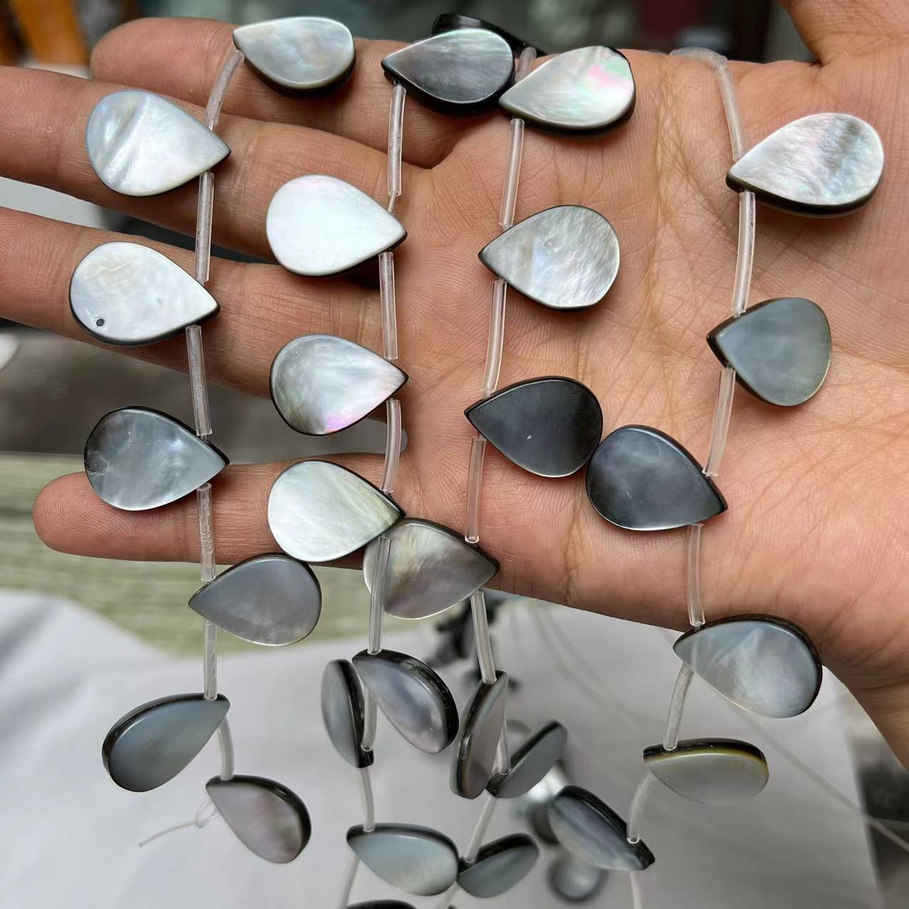 Natural Seashell Beads Teardrop DIY black Sold By Strand
