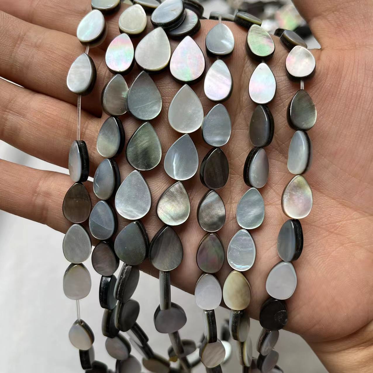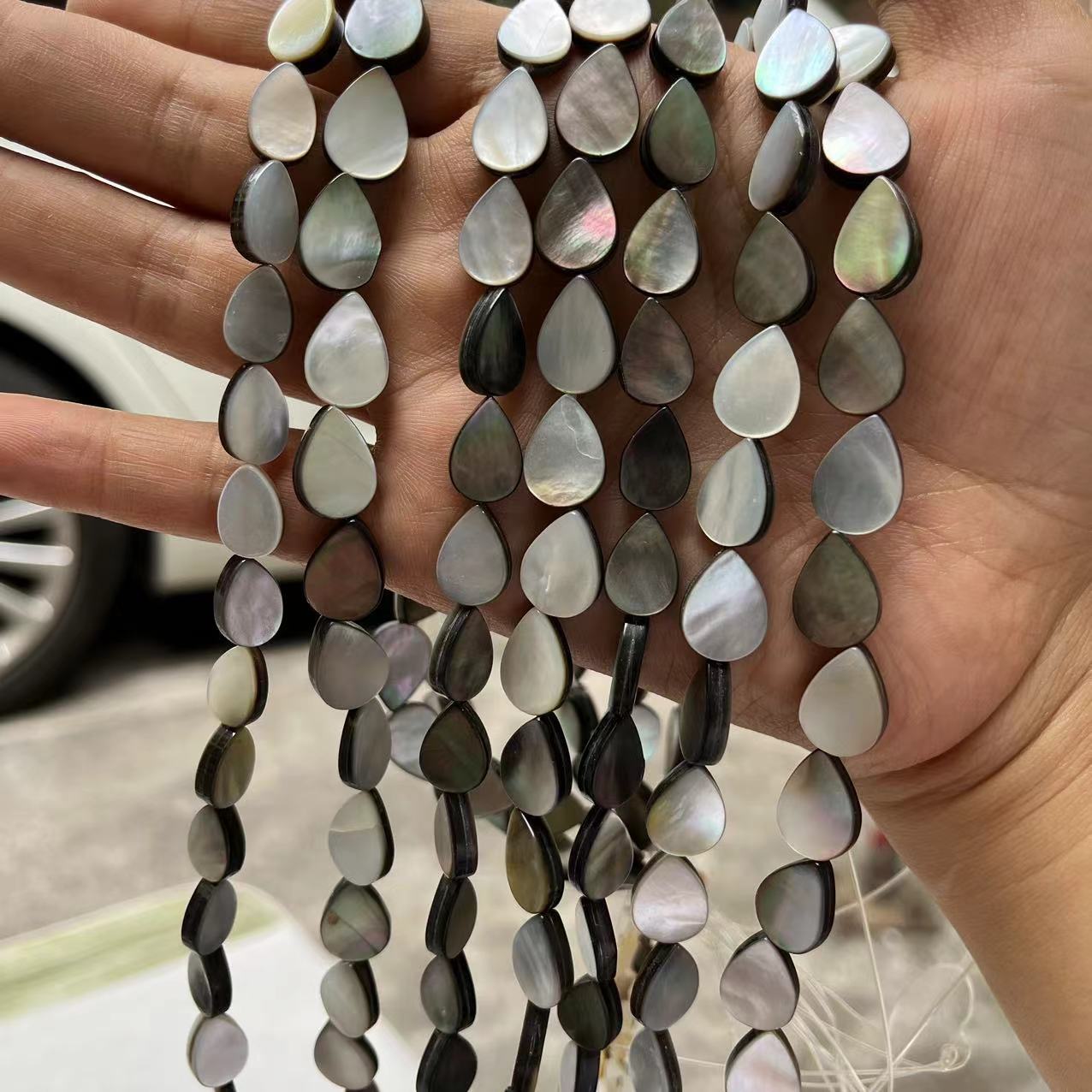 Natural Seashell Beads Teardrop DIY black Sold By Strand