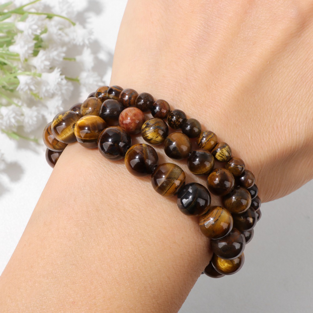 Natural Tiger Eye Bracelets with Elastic Thread handmade fashion jewelry & Unisex Sold By PC