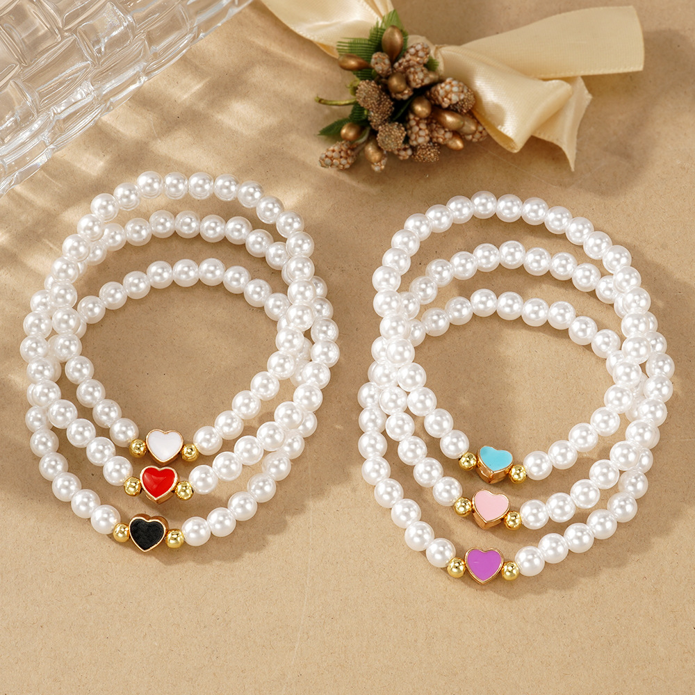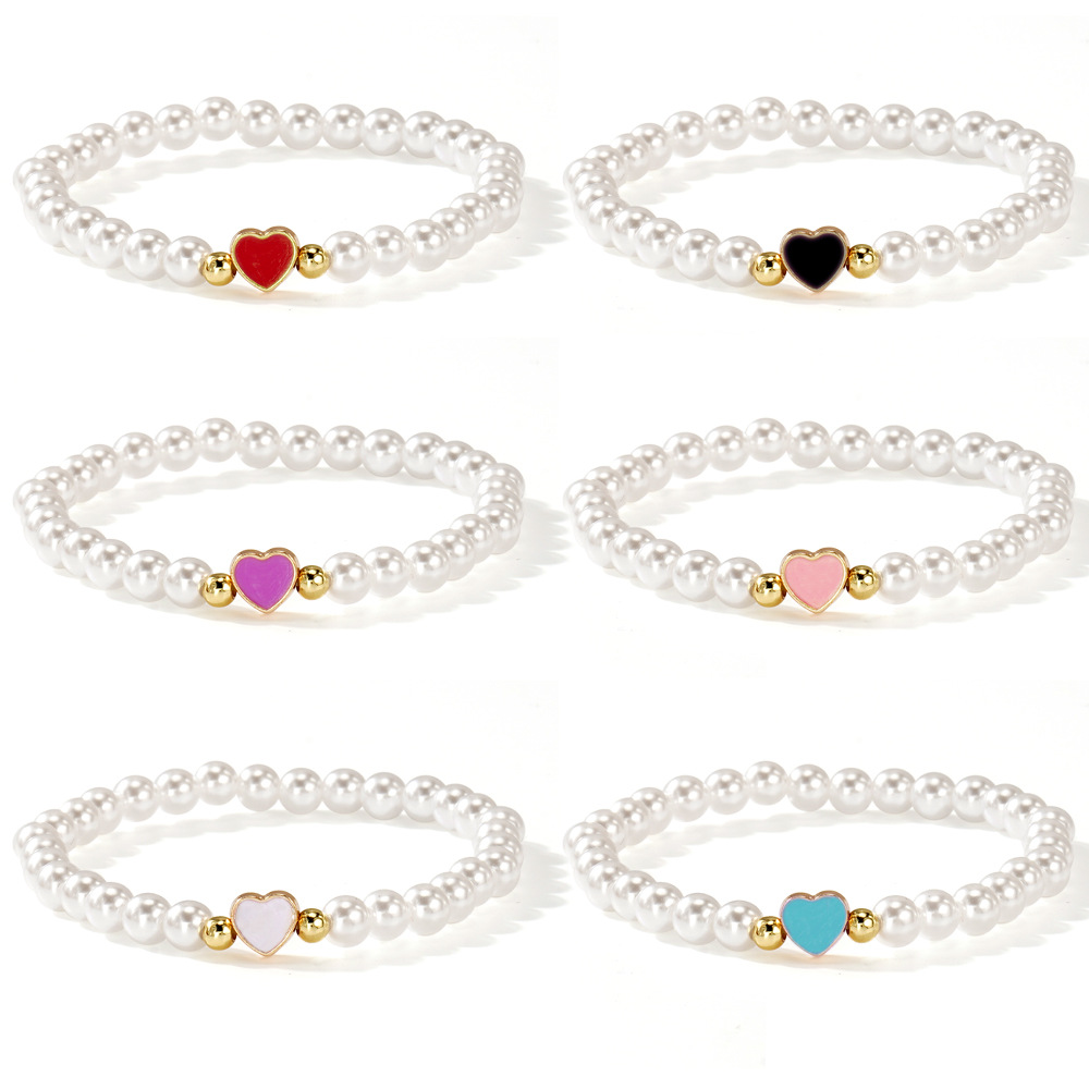 Plastic Bracelet Plastic Pearl with Elastic Thread Heart & for woman & enamel Sold By PC