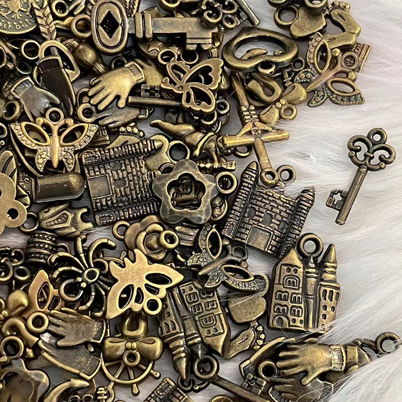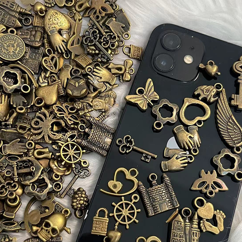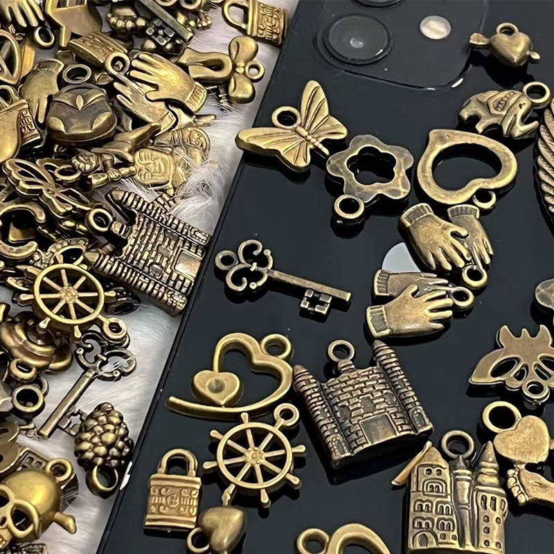 Plastic Pendants antique brass color plated random style & mixed pattern & DIY pendant length 10-30mm Sold By G