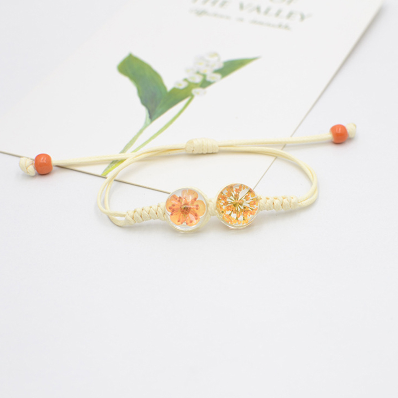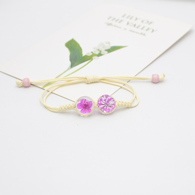 Glass Bracelet with Dried Flower & Porcelain & Wax Cord handmade fashion jewelry & for woman Length Approx 6-10 Inch Sold By PC