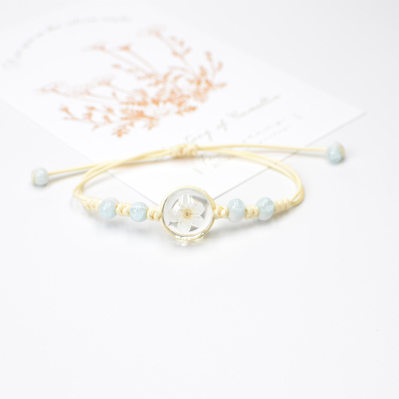 Glass Bracelet with Dried Flower & Porcelain & Wax Cord handmade fashion jewelry & for woman Length Approx 6-10 Inch Sold By PC