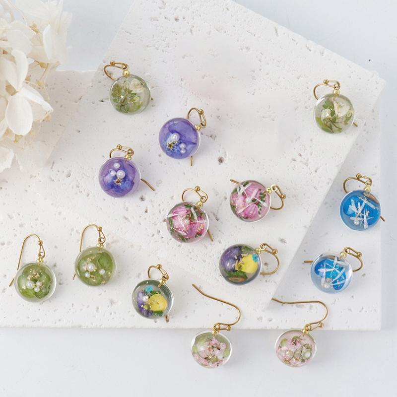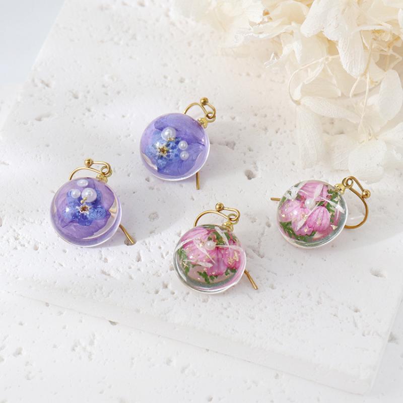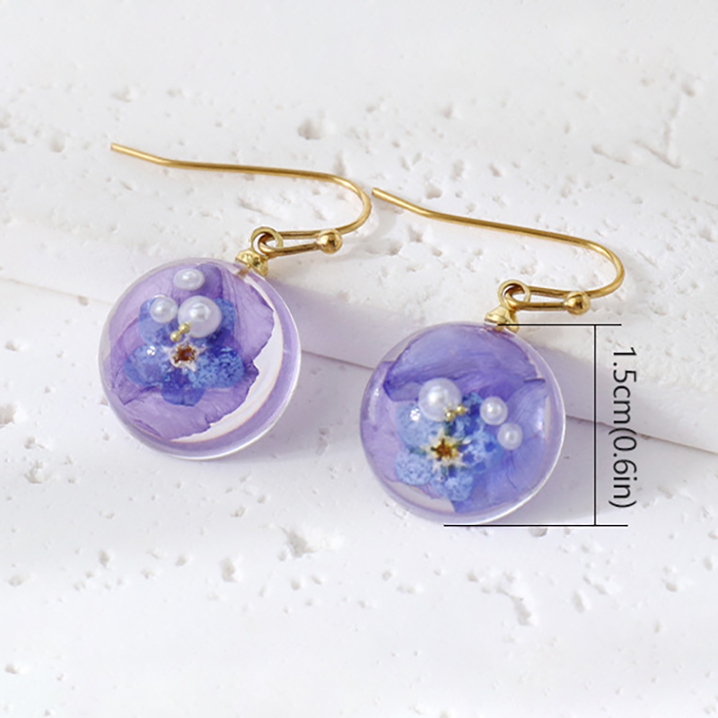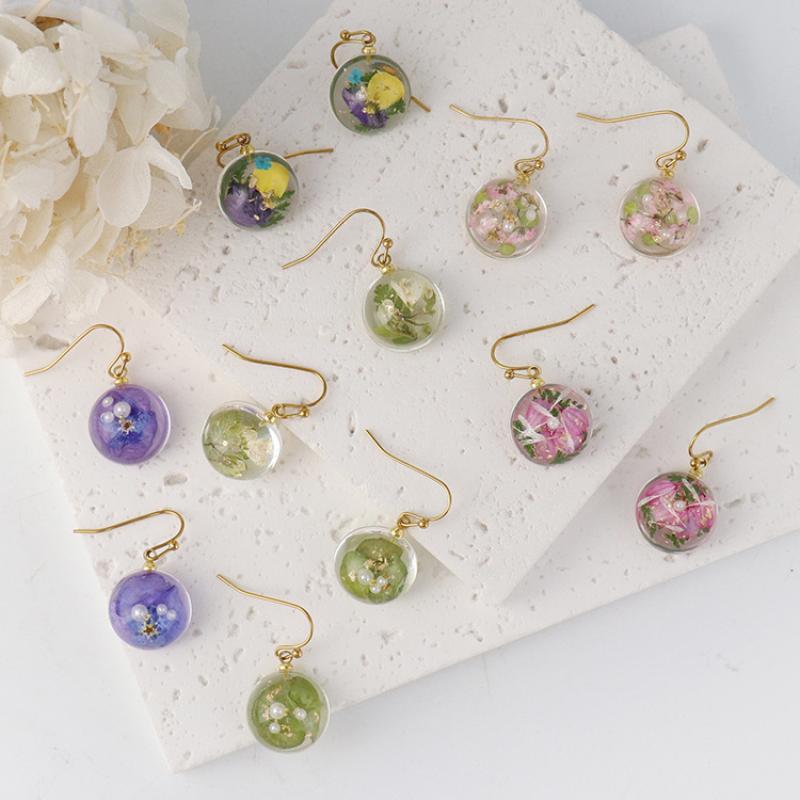 Resin Drop Earring with Dried Flower & 304 Stainless Steel Round fashion jewelry & for woman Sold By Bag
