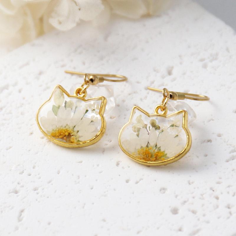 Zinc Alloy Drop Earring with Dried Flower & Resin & 304 Stainless Steel epoxy gel fashion jewelry & for woman golden Sold By Bag