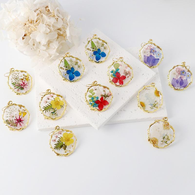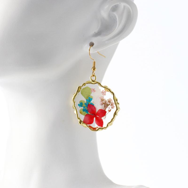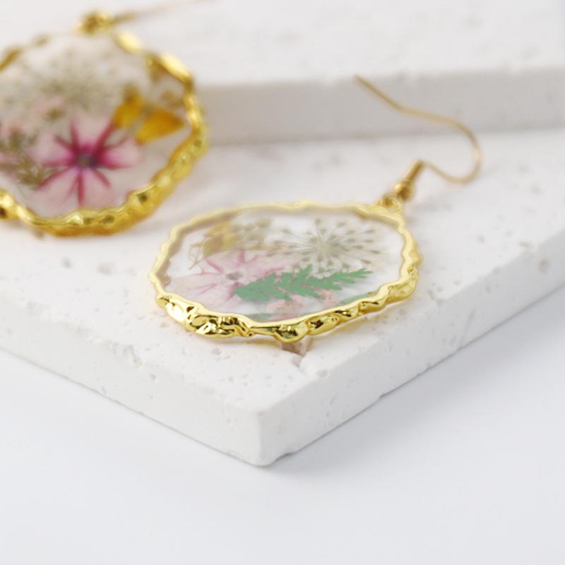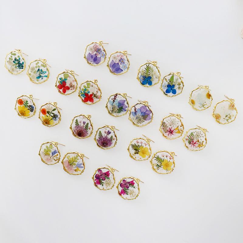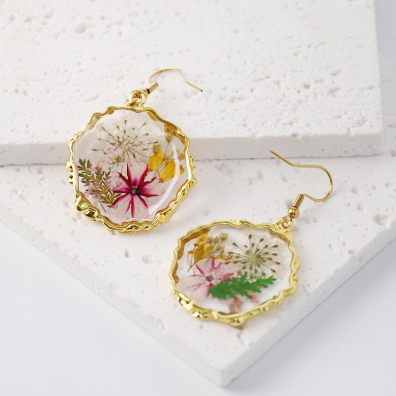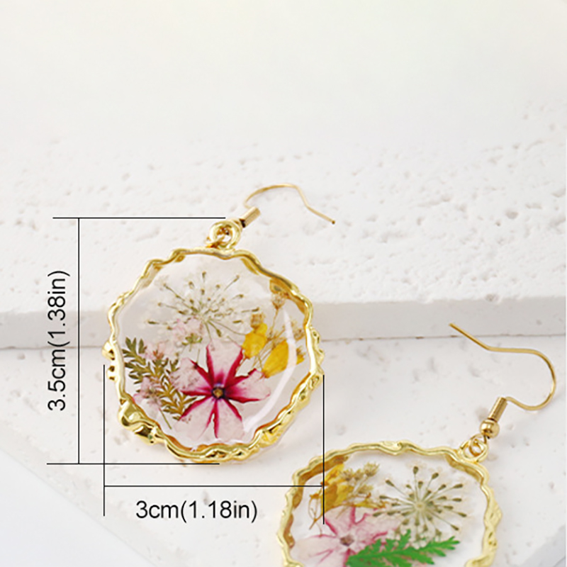 Zinc Alloy Drop Earring with Dried Flower & Resin & 304 Stainless Steel & for woman & epoxy gel golden Sold By Bag