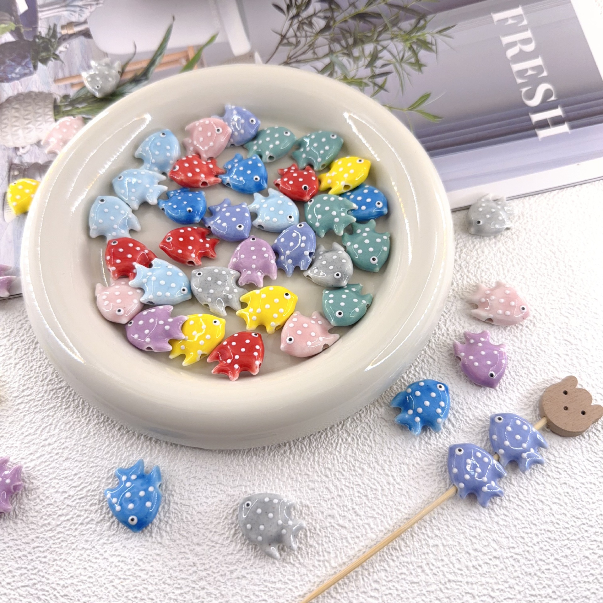 Printing Porcelain Beads Fish DIY Approx 2.5mm Sold By Bag