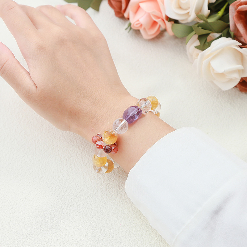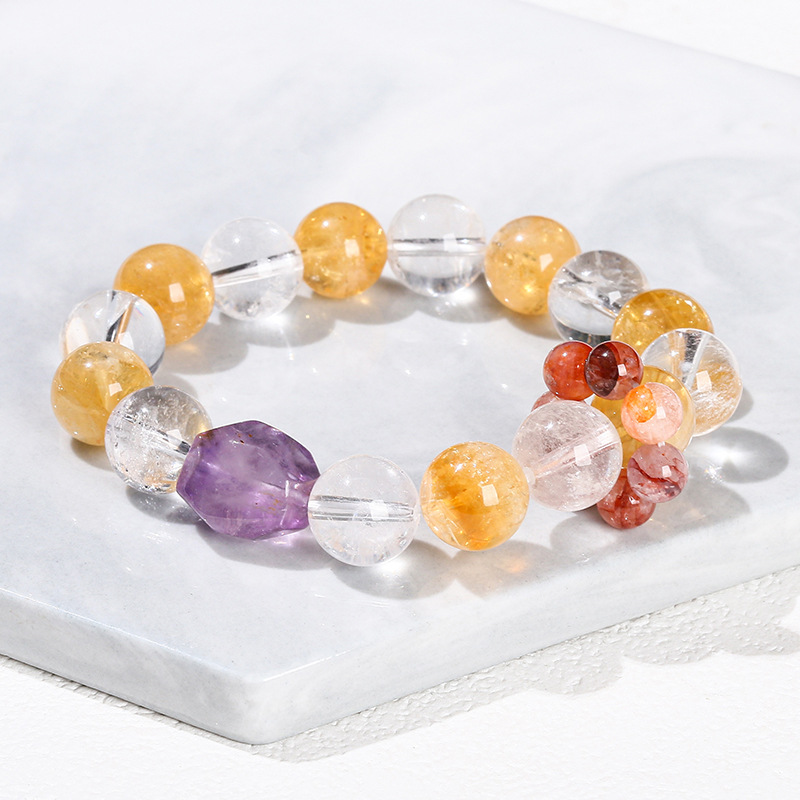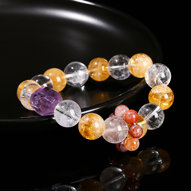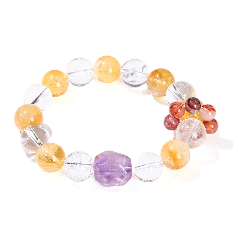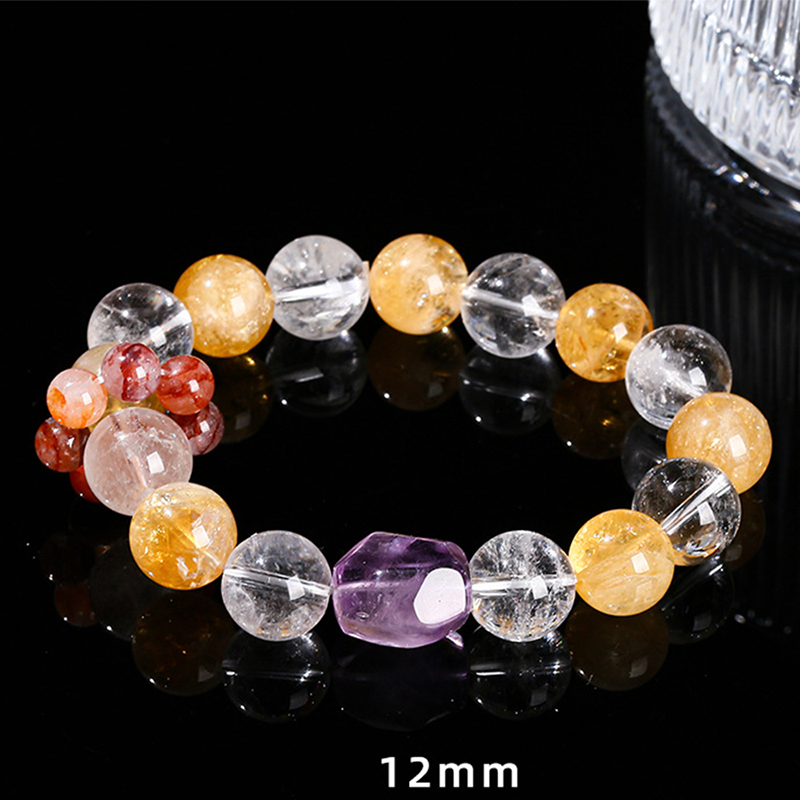 Citrine Bracelet with Amethyst & Clear Quartz Round handmade natural & for woman Grade AAA beads length 12mm Length Approx 6.5-7 Inch Sold By PC