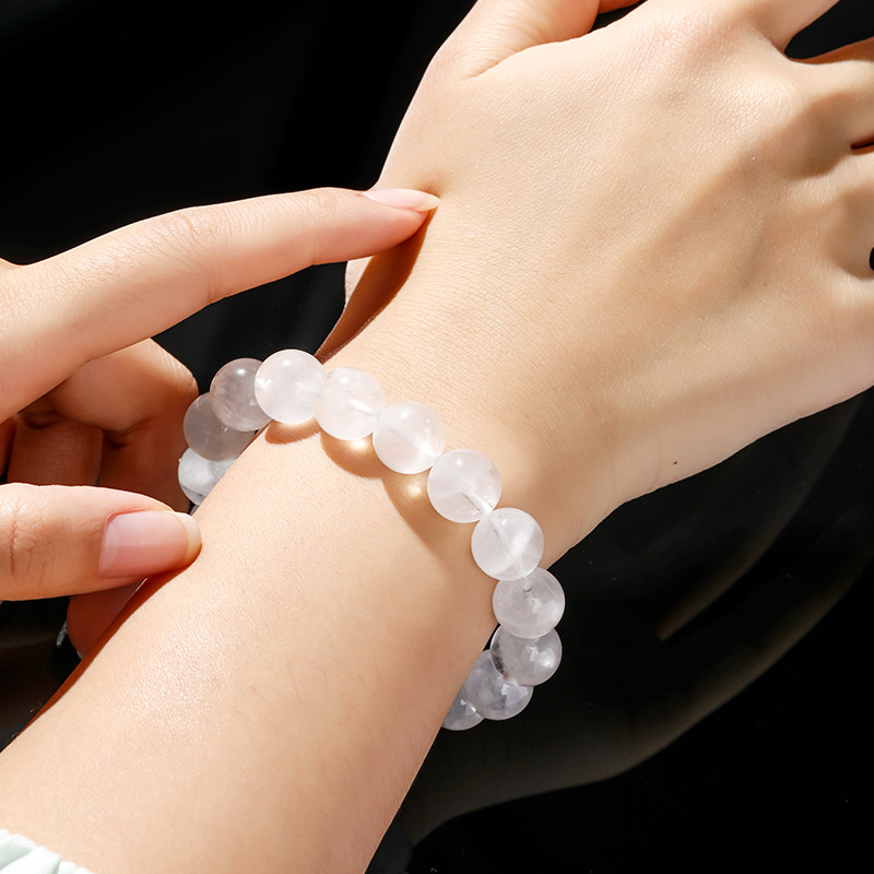 Phantom Quartz Bracelet Round handmade natural & Unisex white Grade AAAAA Length Approx 6-7.5 Inch Sold By PC