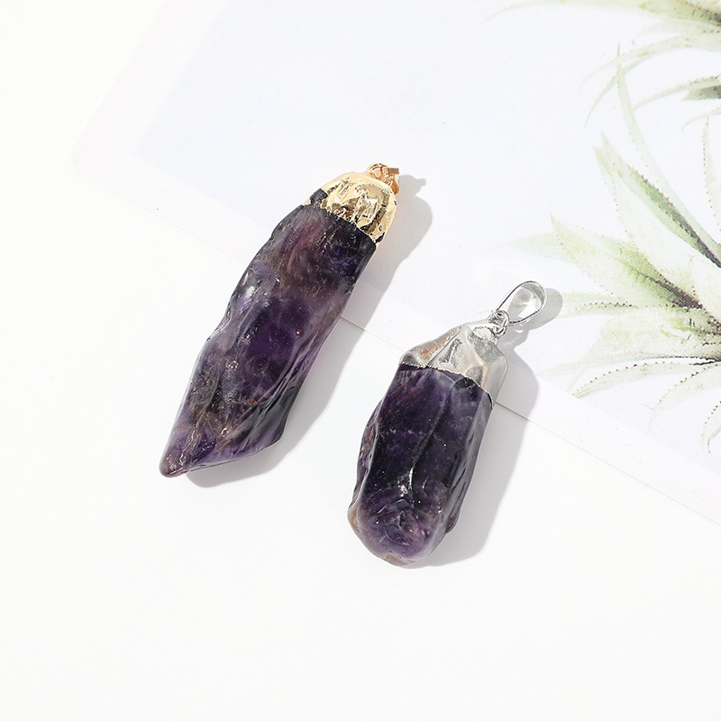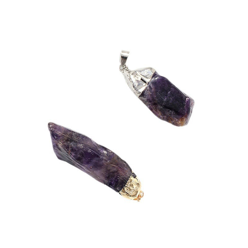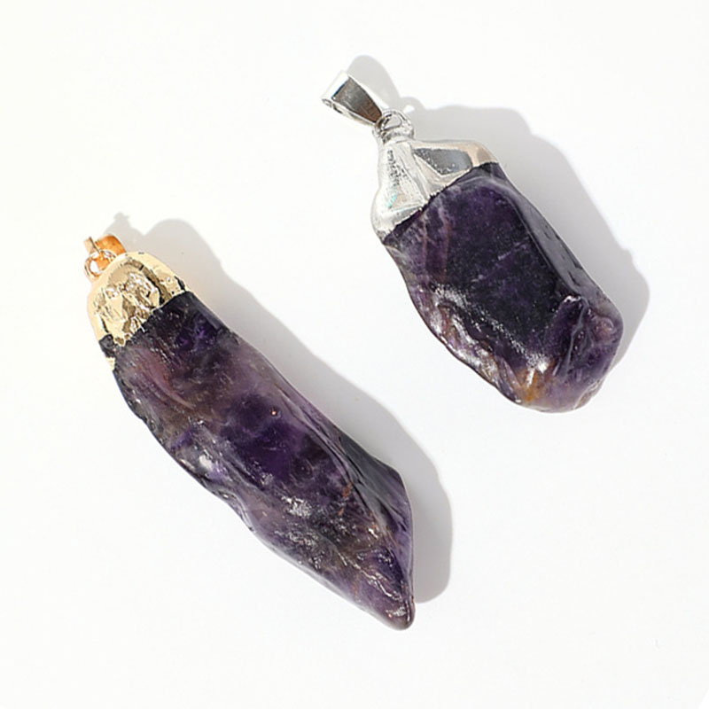 Quartz Gemstone Pendants Amethyst with Brass plated DIY x30- Sold By PC
