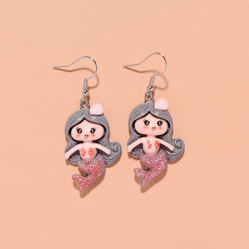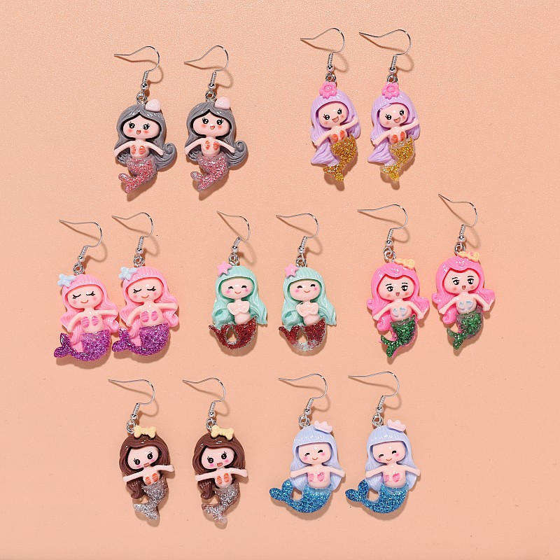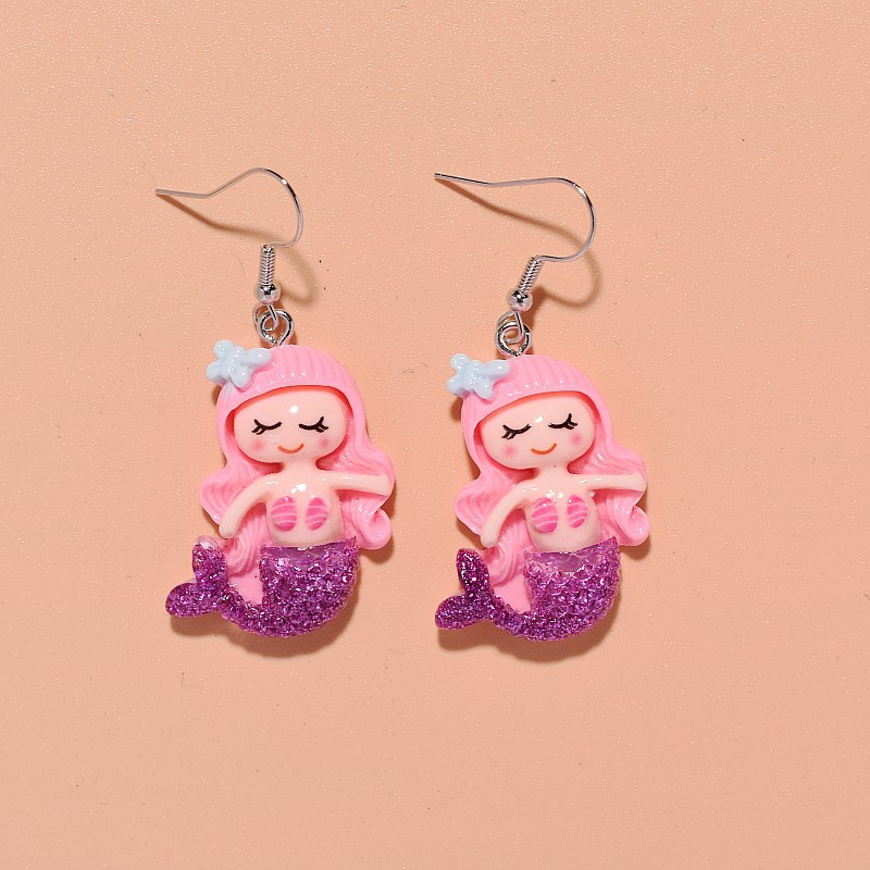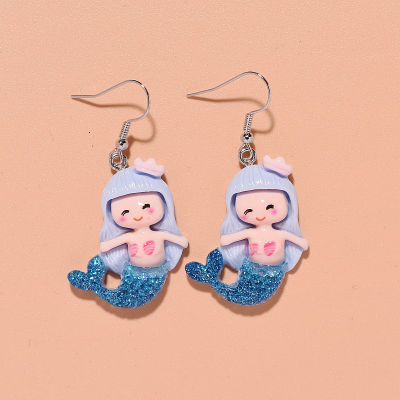 Resin Drop Earring with Zinc Alloy Mermaid fashion jewelry & for woman Sold By Pair