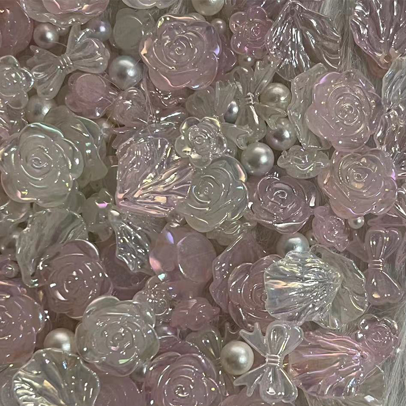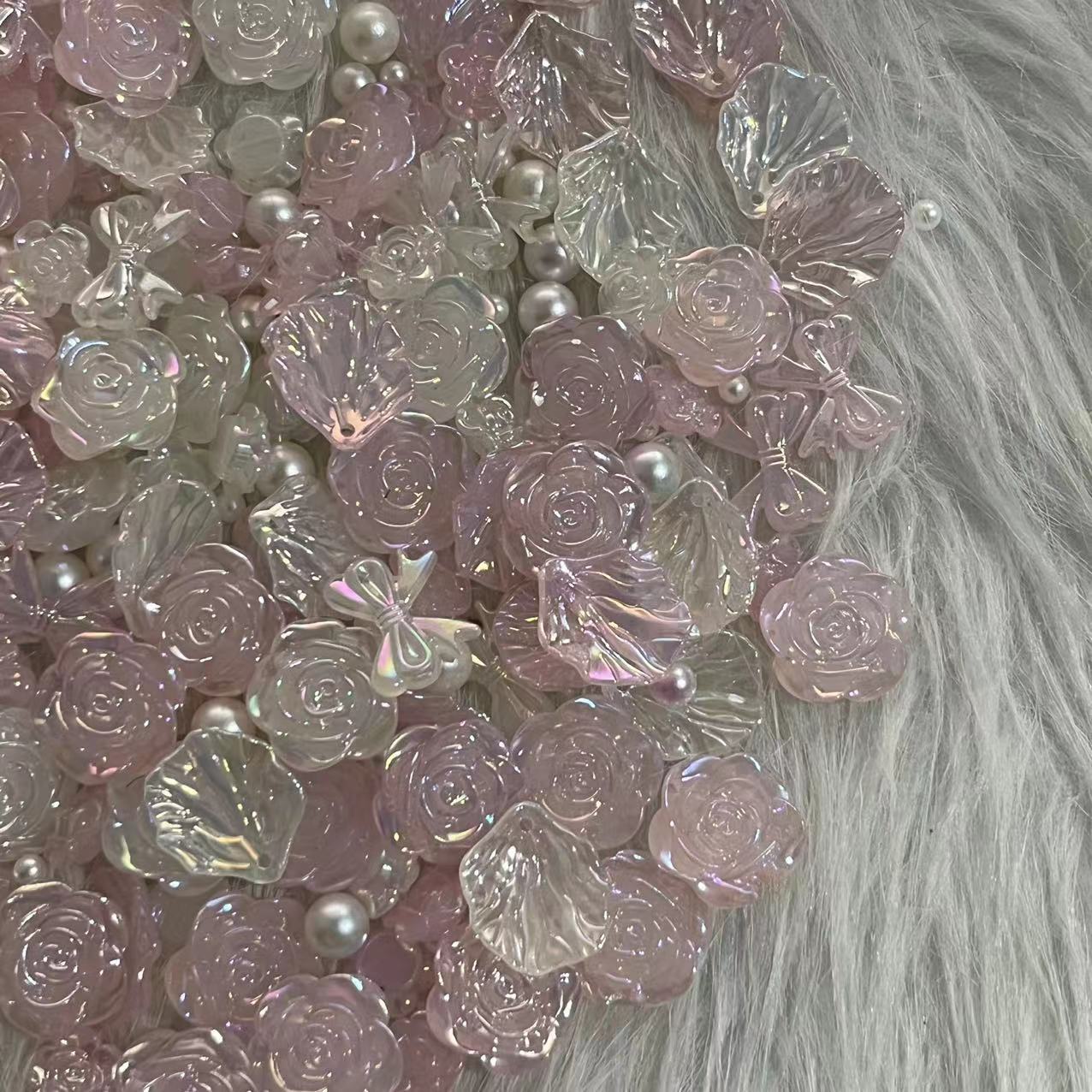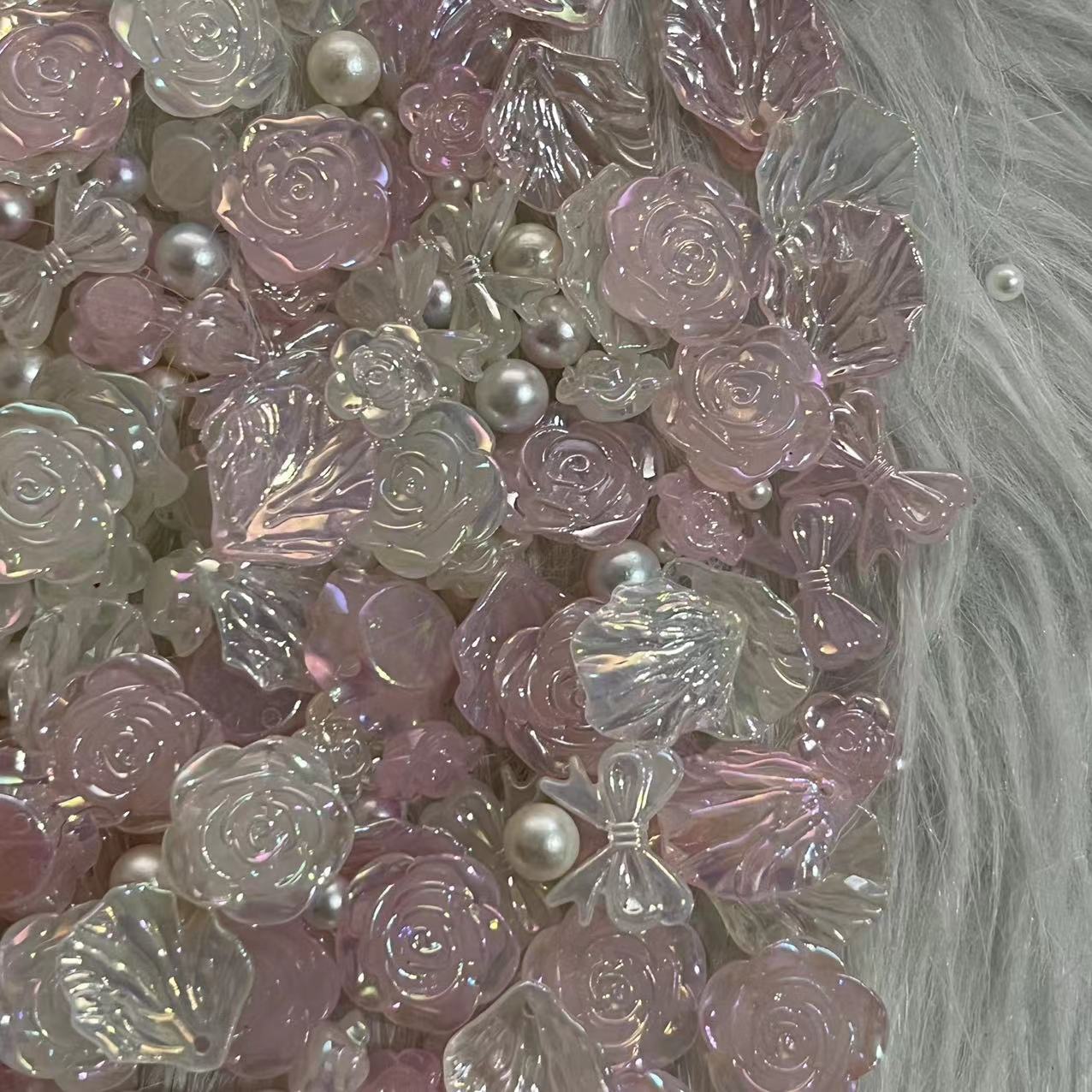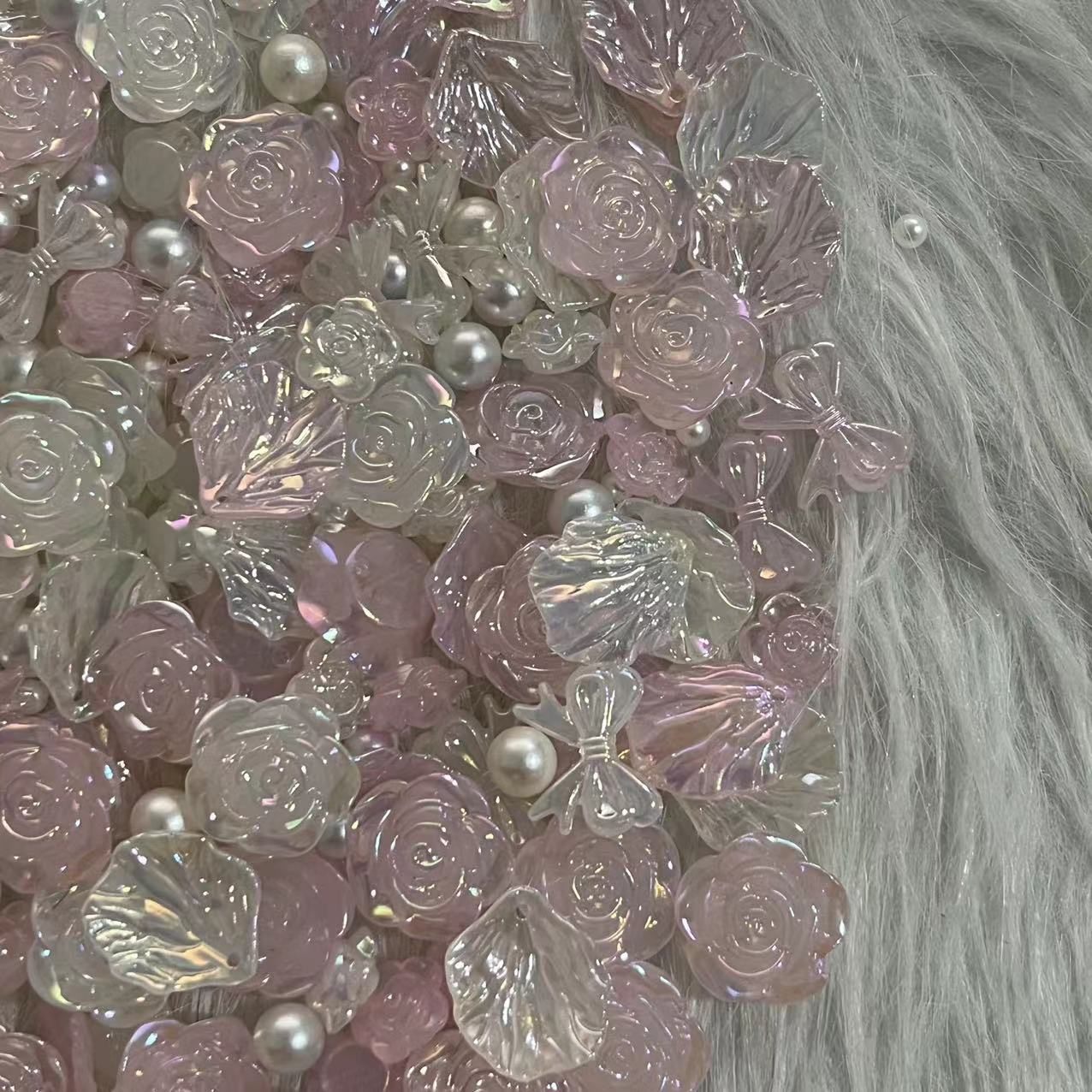 Resin Jewelry Beads Flower mixed pattern & DIY pink pendant length 20-30mm Sold By PC