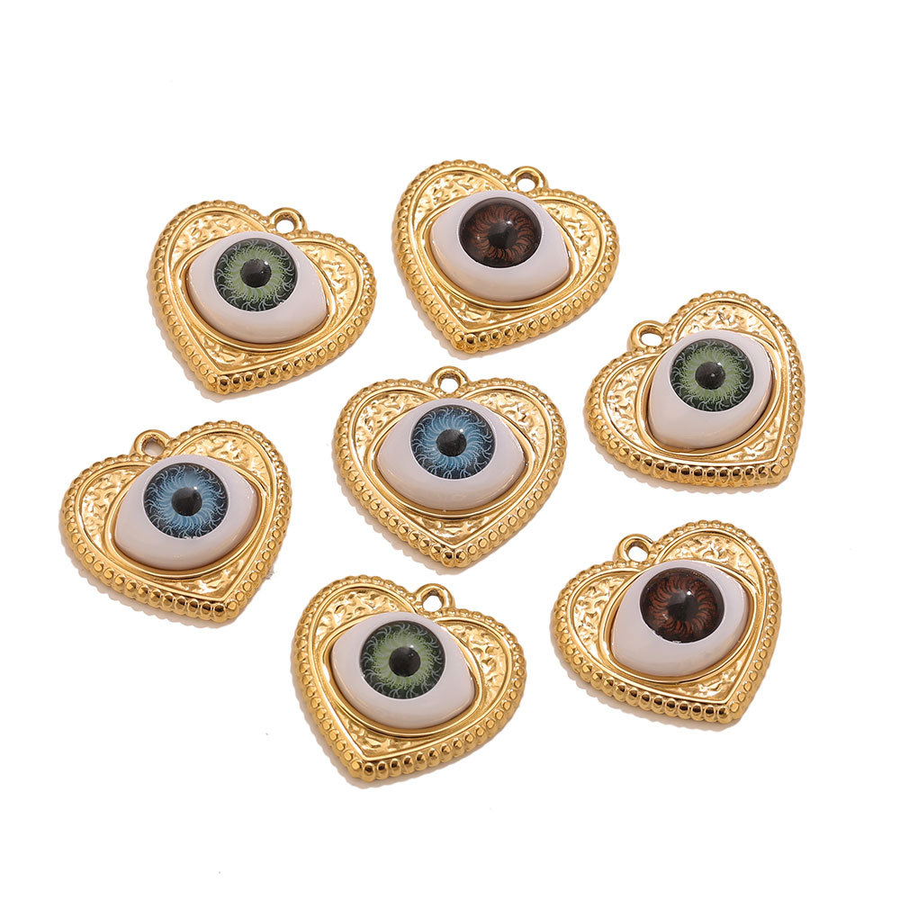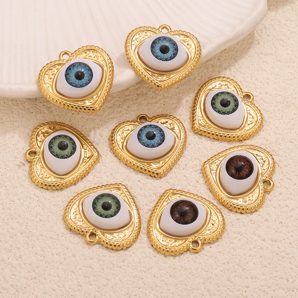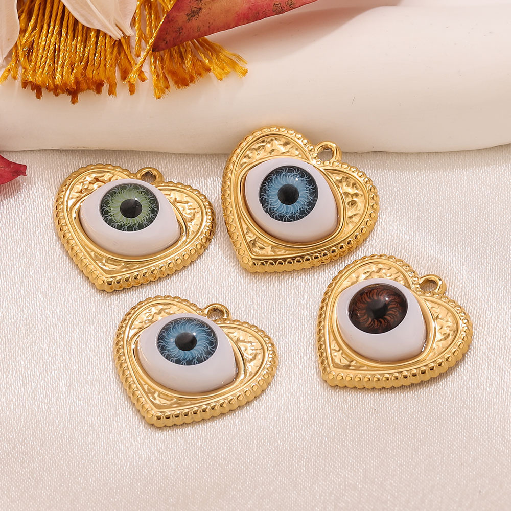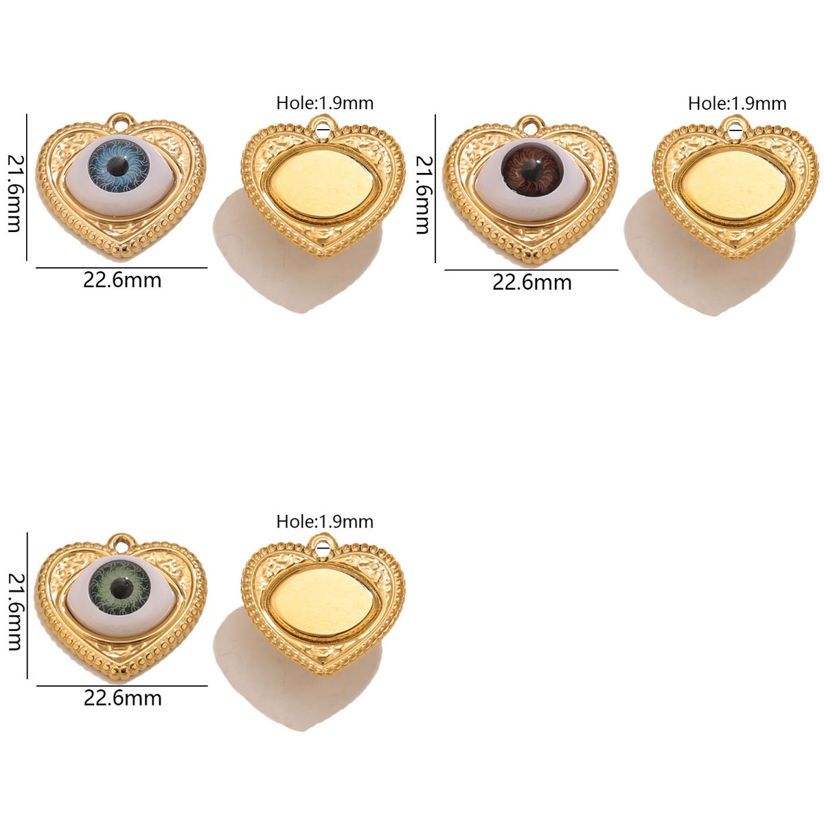 Resin Pendant 304 Stainless Steel with Resin Heart gold color plated with eye pattern & DIY Approx 1.9mm Sold By PC