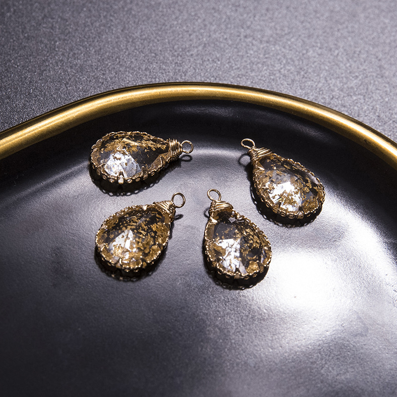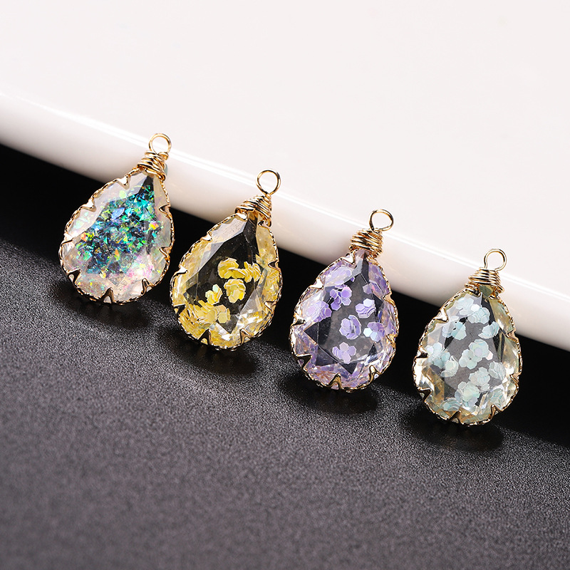 Resin Pendant with Dried Flower & Brass Teardrop plated DIY Sold By PC