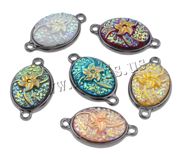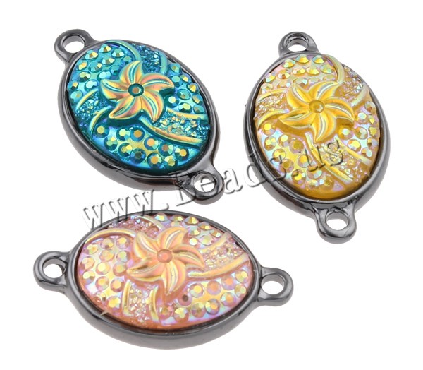 Resin Zinc Alloy Connector with Resin Flat Oval plumbum black color plated & colorful plated & 1/1 loop mixed colors nickel lead & cadmium free Approx 1.5-2mm Sold By Bag