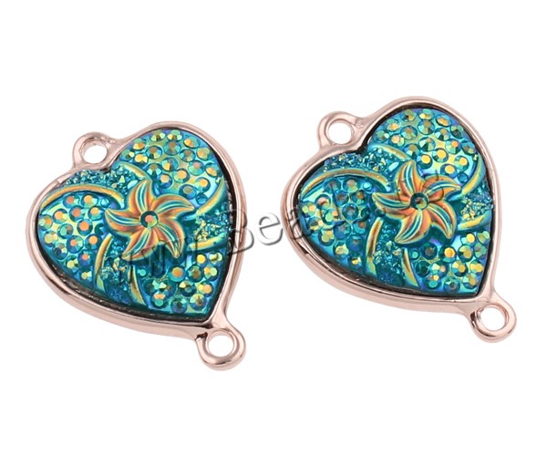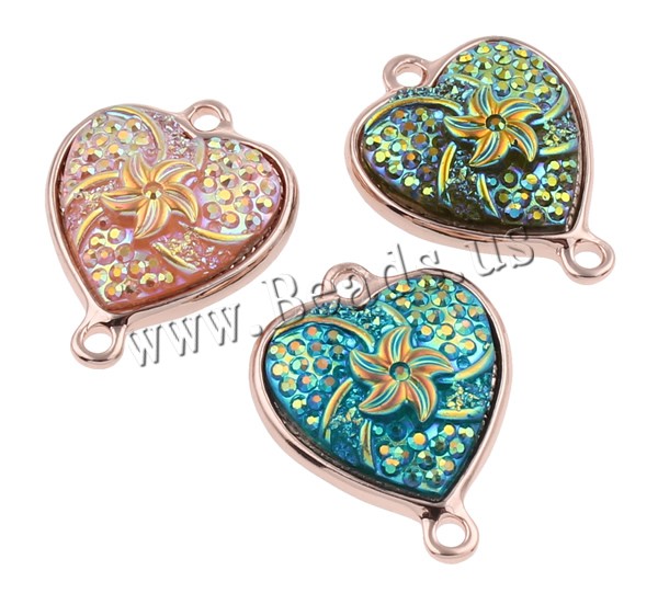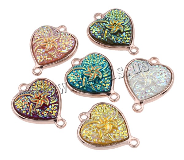 Resin Zinc Alloy Connector with Resin Heart rose gold color plated & colorful plated & 1/1 loop mixed colors nickel lead & cadmium free Approx 2mm Sold By Bag